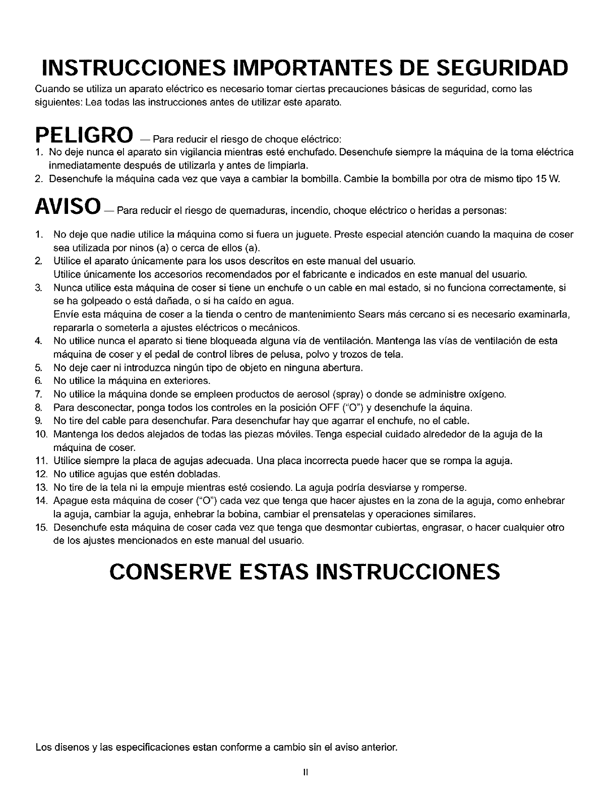 15. Desenchufe esta m_quina de coser cada vez que tenga que desmontar cubiertas, engrasar, o hacer cualquier otro
