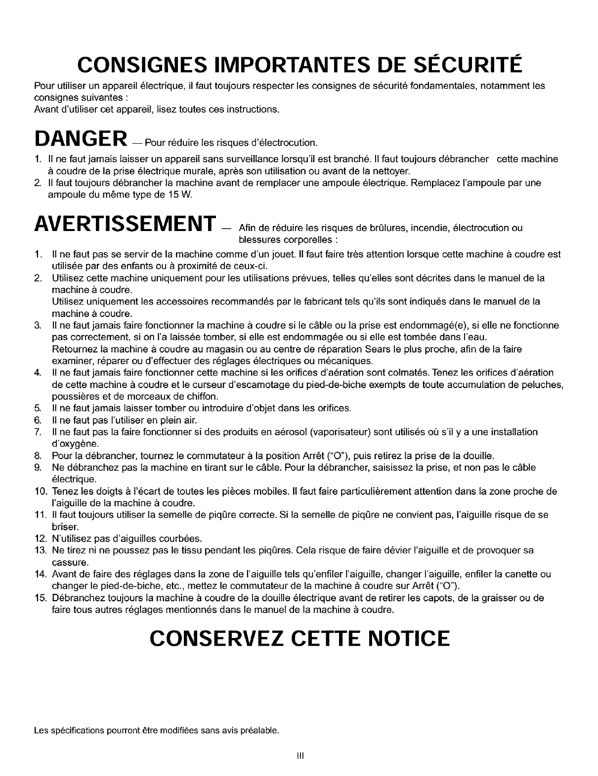 1. I1ne faut passe servir de la machine comme d'un jouet. I1faut faire tres attention Iorsque cette machine a coudre est