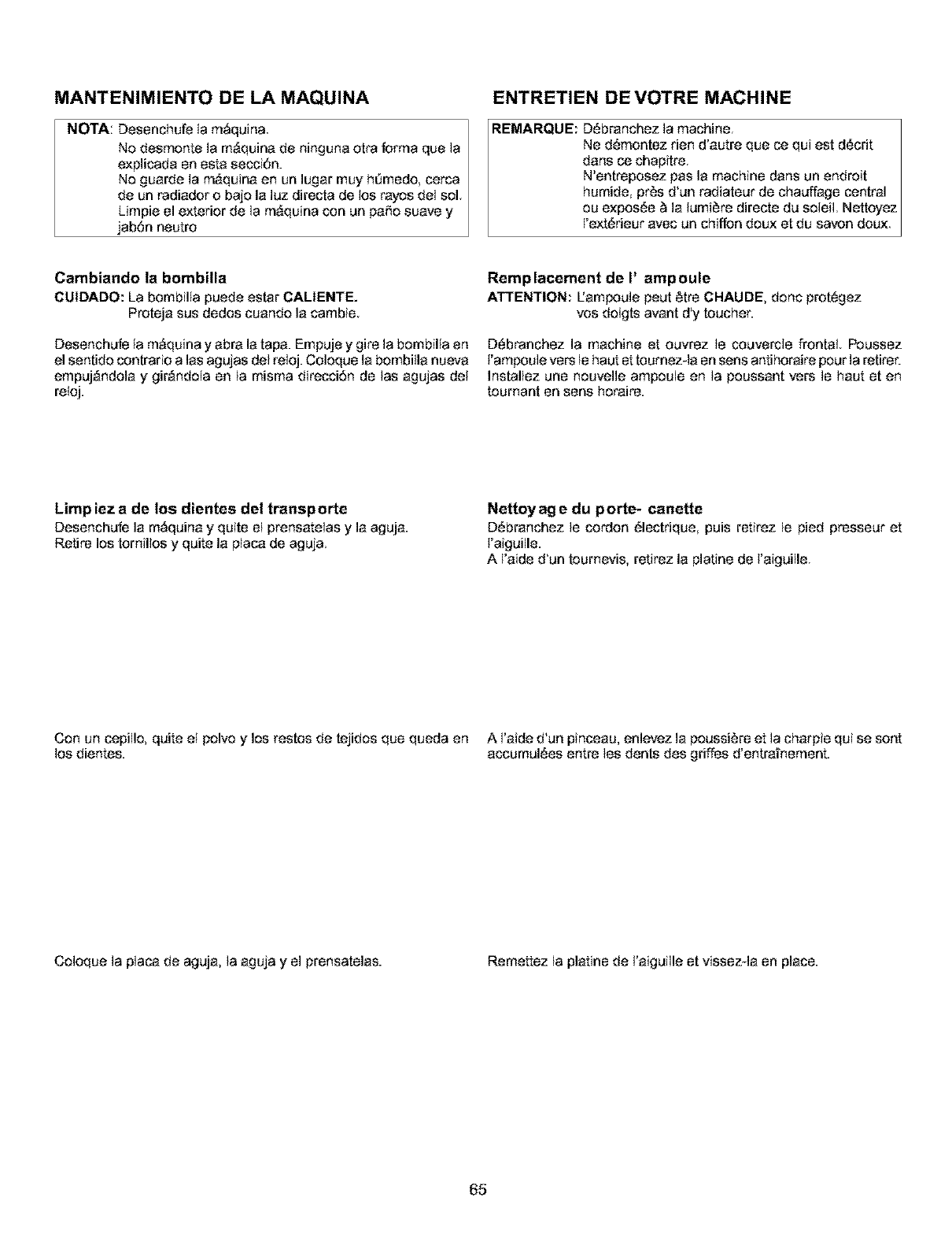 2. Desenchufe la m_quina cada vez que vaya a cambiar la bombilla. Cambie la bombilla por otra de mismo tipo 15 W.