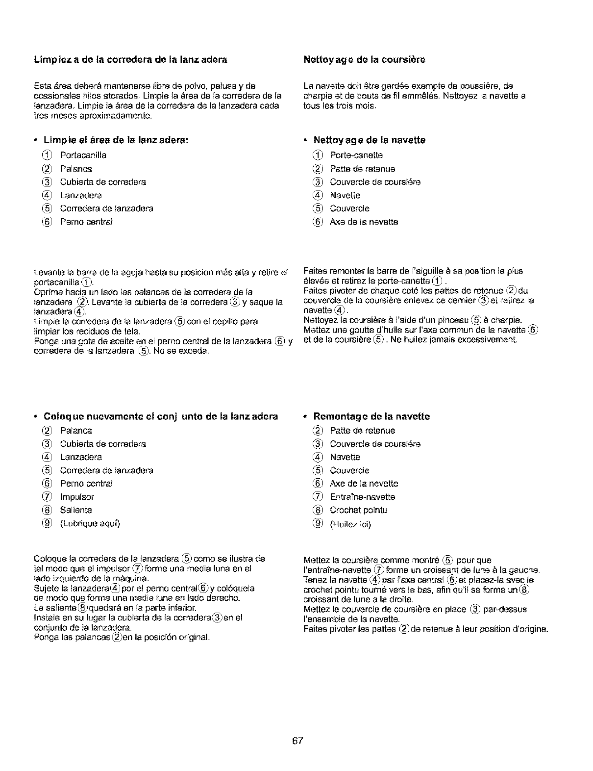 la aguja, cambiar la aguja, enhebrar la bobina, cambiar el prensatelas y operaciones similares.