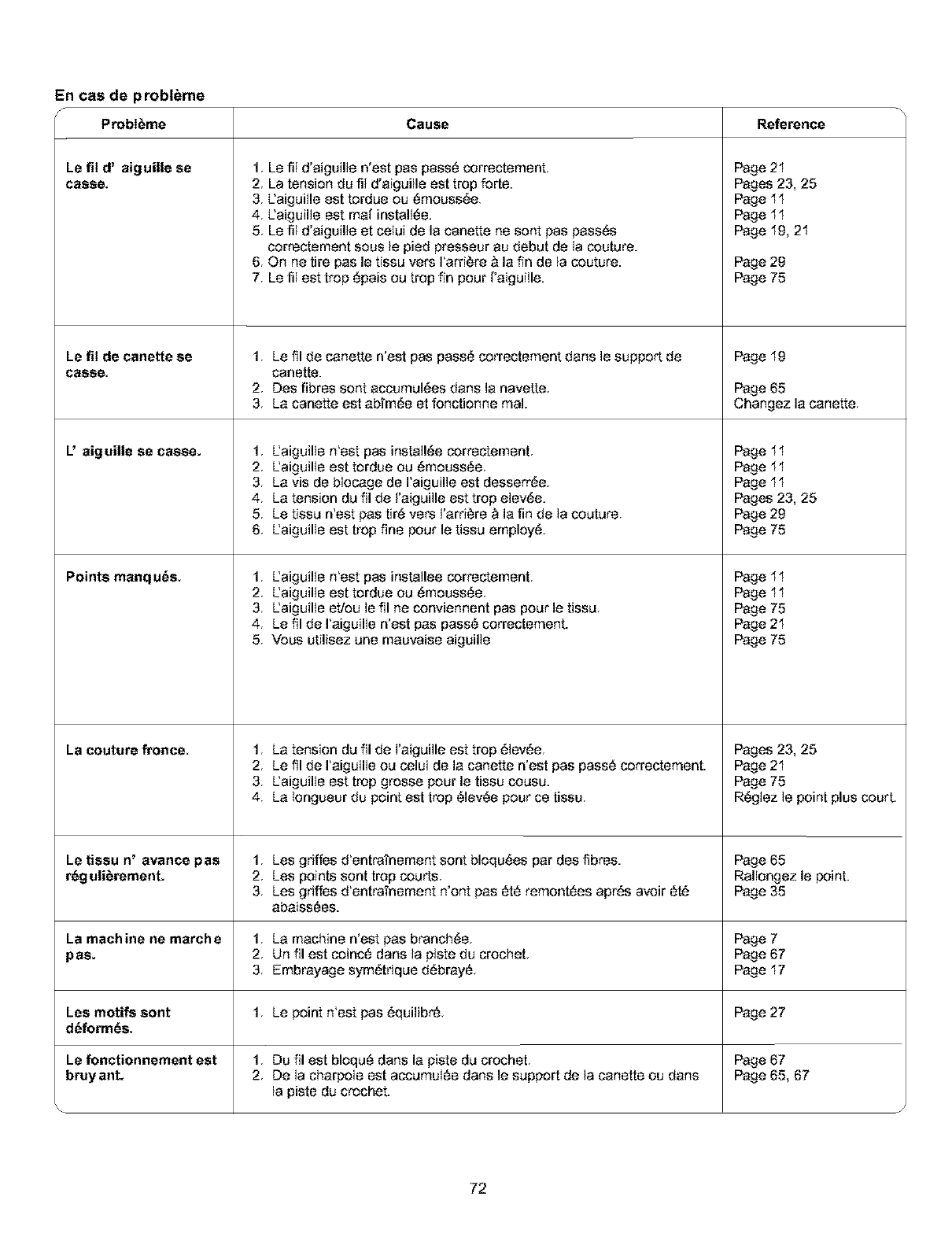 S'y r6f6rer auant de commencer & coudre. Assurezvous d'utiliser la m6me taille et le m6me type de fil pour I'aiguille et