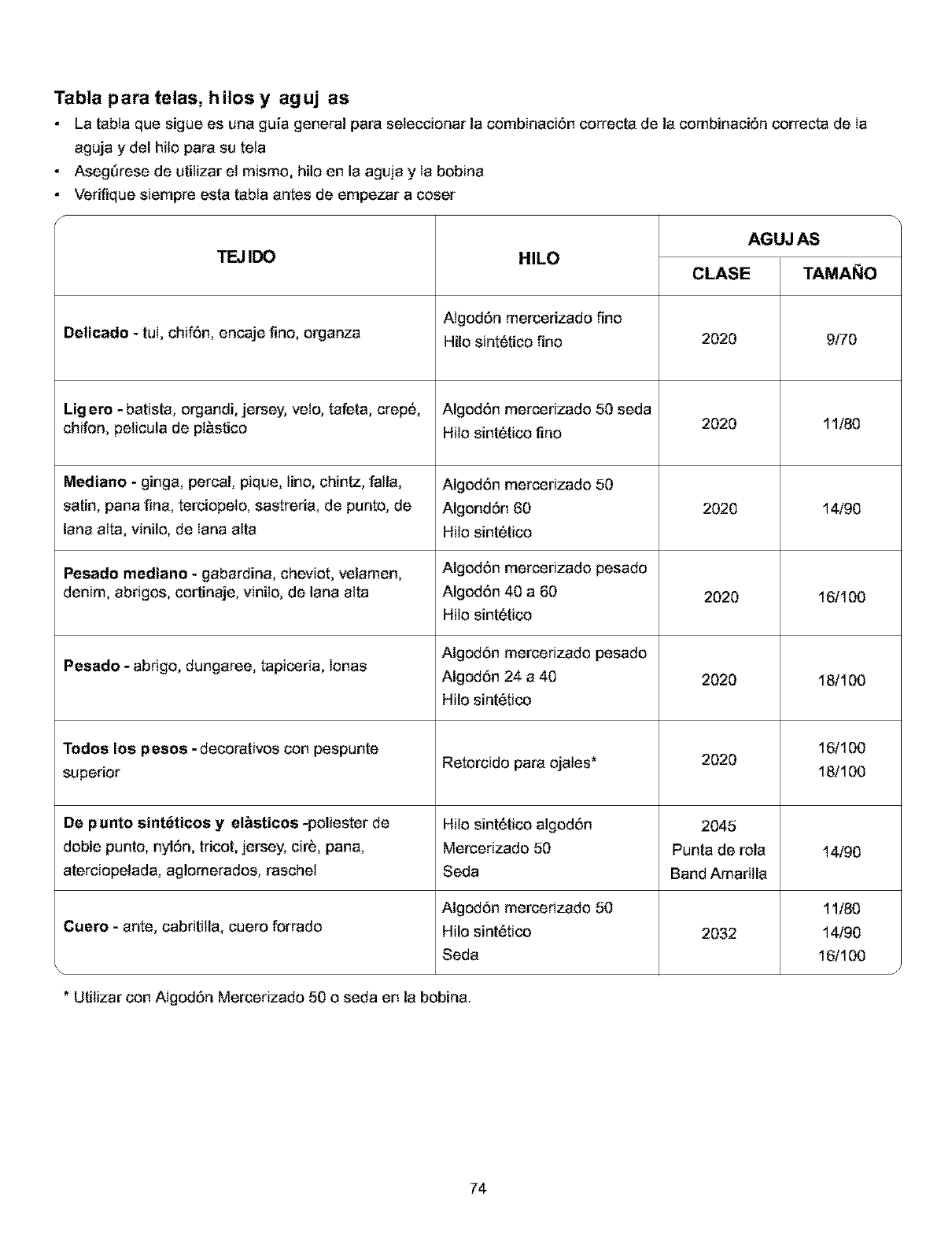 * UUlizar con Algod6n Mercerizado 50 o seda en la bobina.