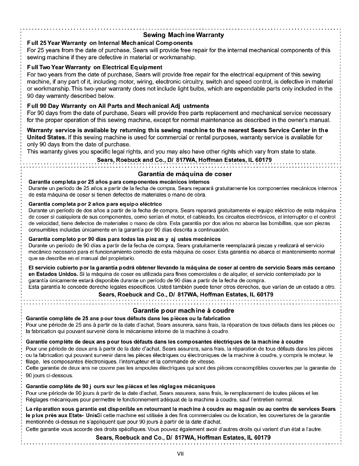 Envie esta maquina de coser a la tienda o centro de mantenimiento Sears mas cercano si es necesado examinarla,