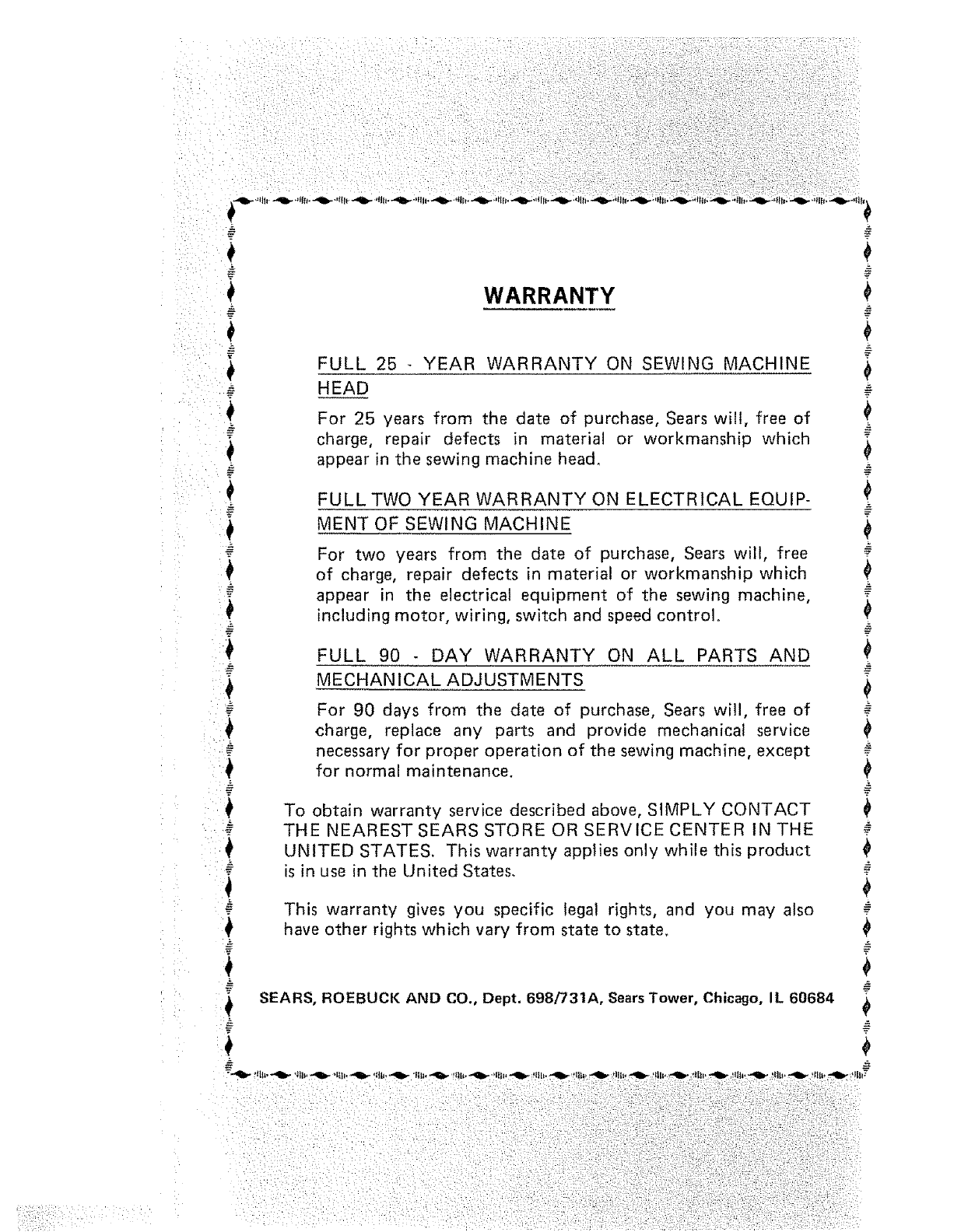 FULL 25 -YEAR WARRANTY ON SEWING MACHINE
