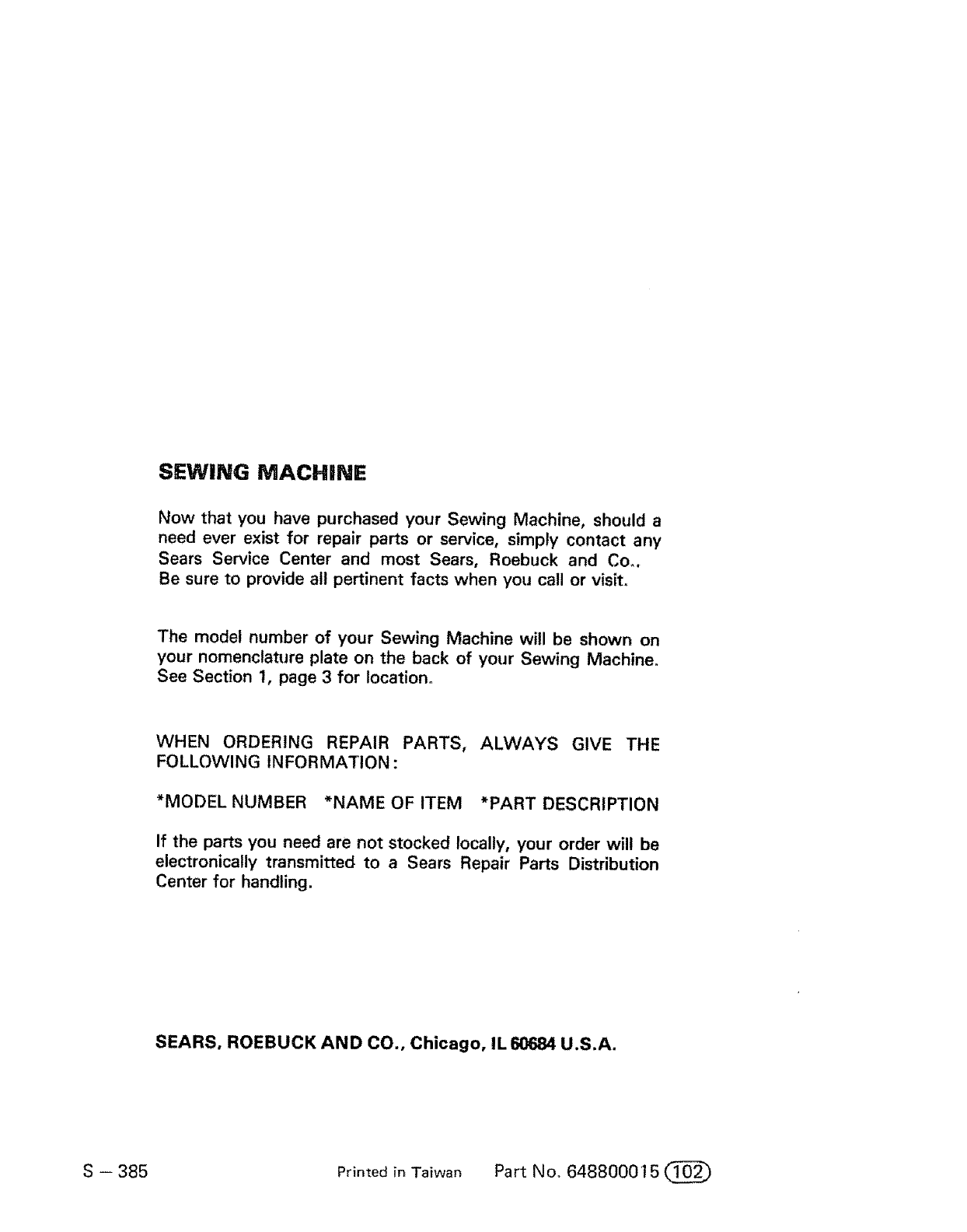 S-385 Printed in Taiwan Part Nor 6488000'15