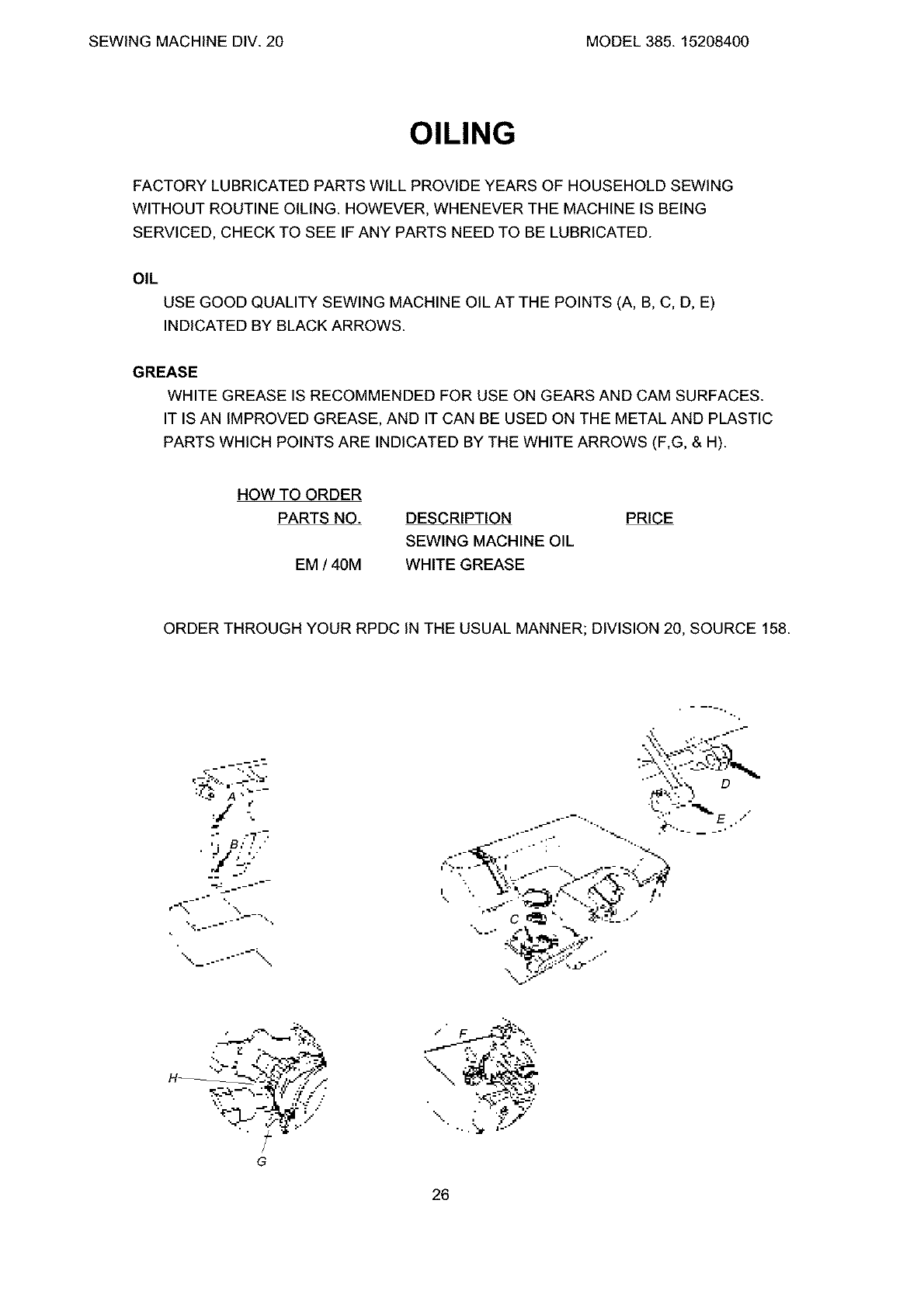 USE GOOD QUALITY SEWING MACHINE OIL AT THE POINTS (A, B, C, D, E)