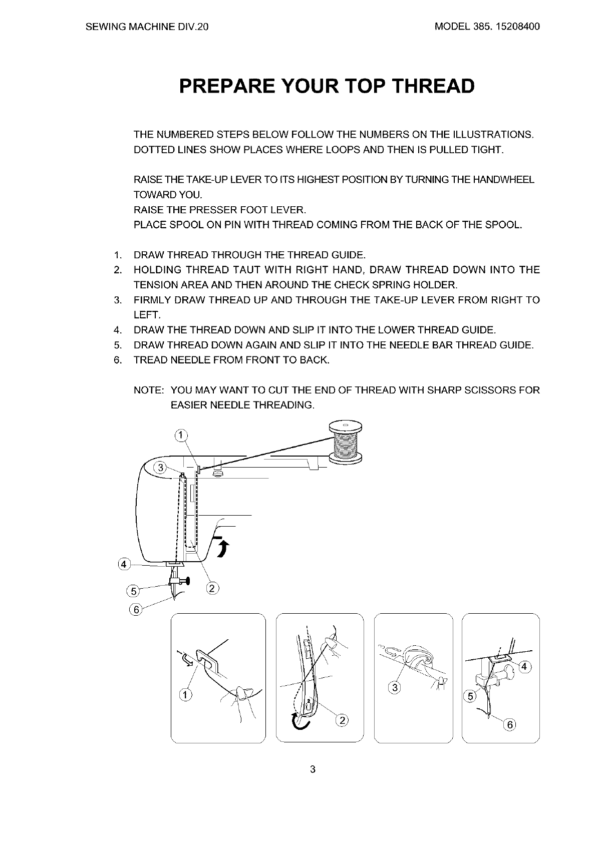3. PULL END OF THREAD THROUGH BOBBIN AS SHOWN.