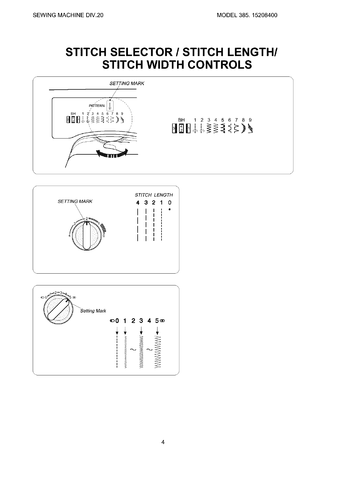 STITCH SELECTOR /STITCH LENGTH/STITCH WIDTH CONTROLS .............