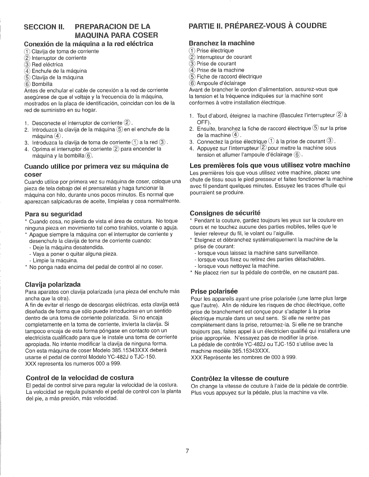 15. Desenchufe esta maquina de coser cada vez que tenga que desmontar cubiertas, engrasar, o hacer cualquier otro