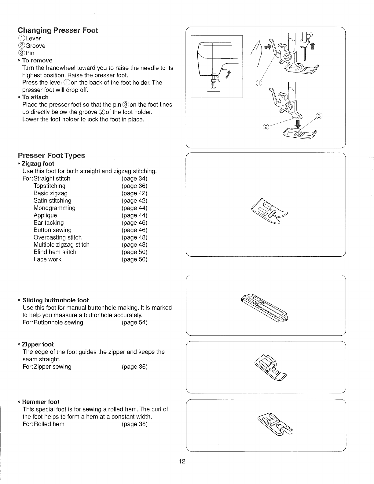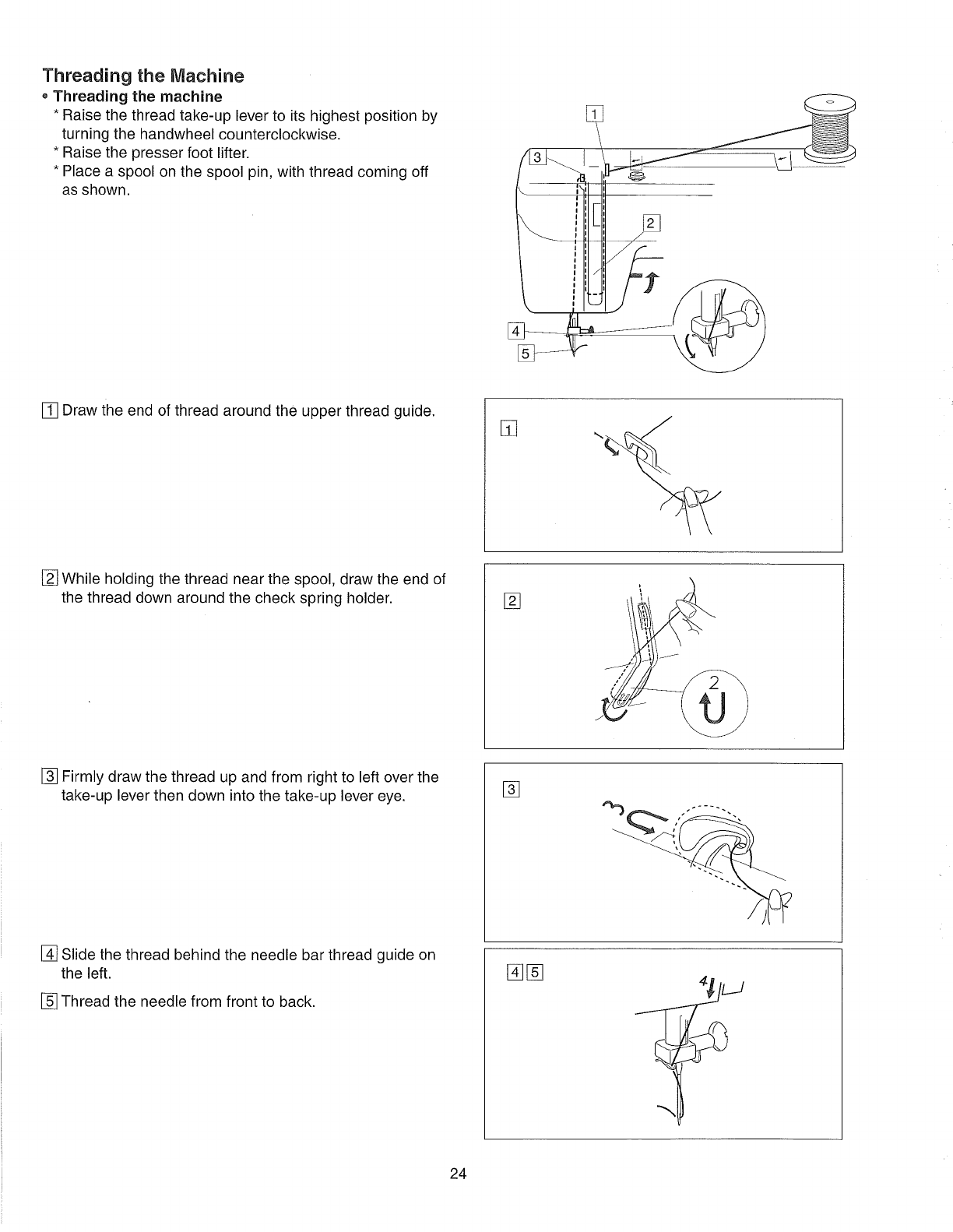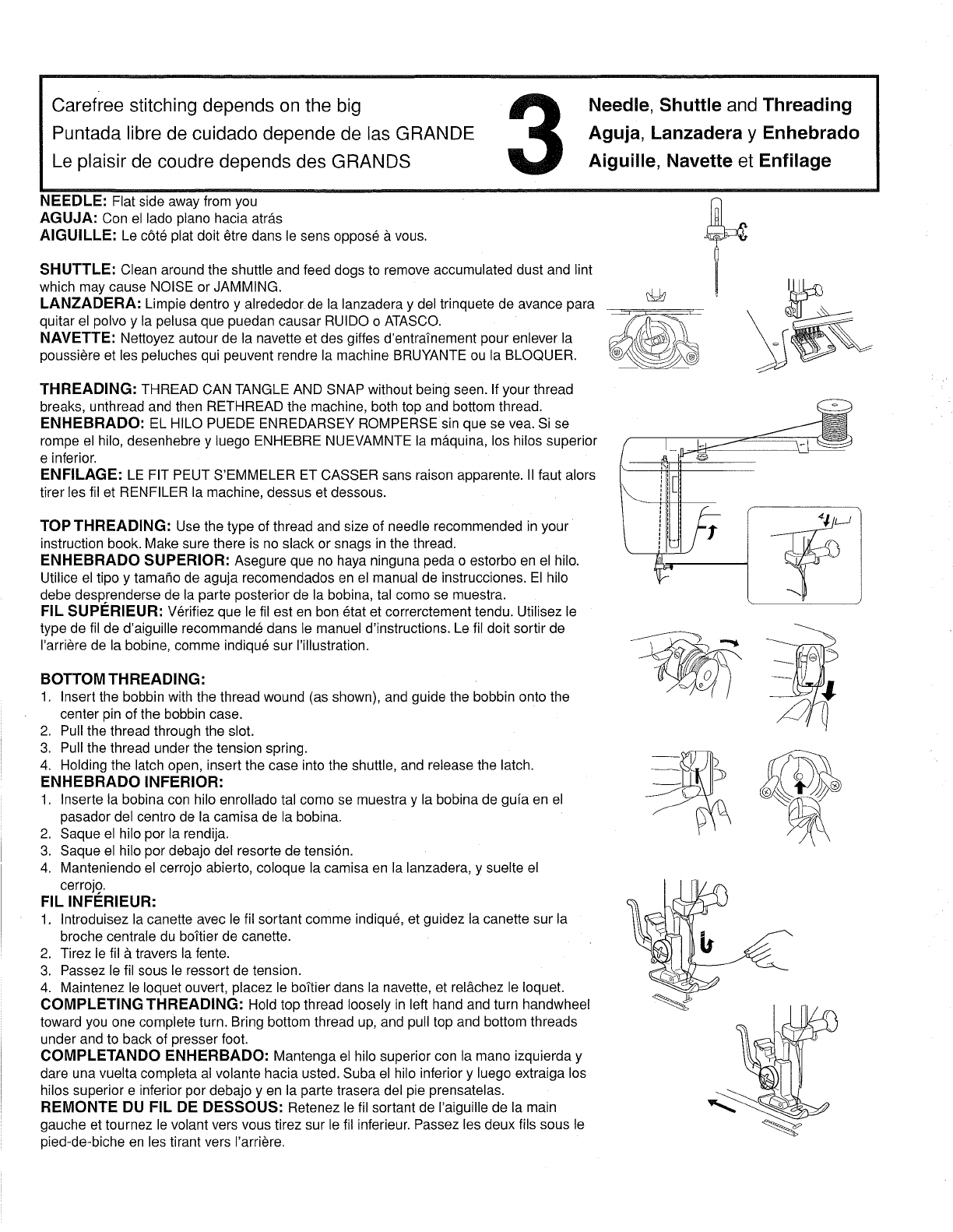 changing the needle, threading the bobbin, changing the presser foot, and the like.