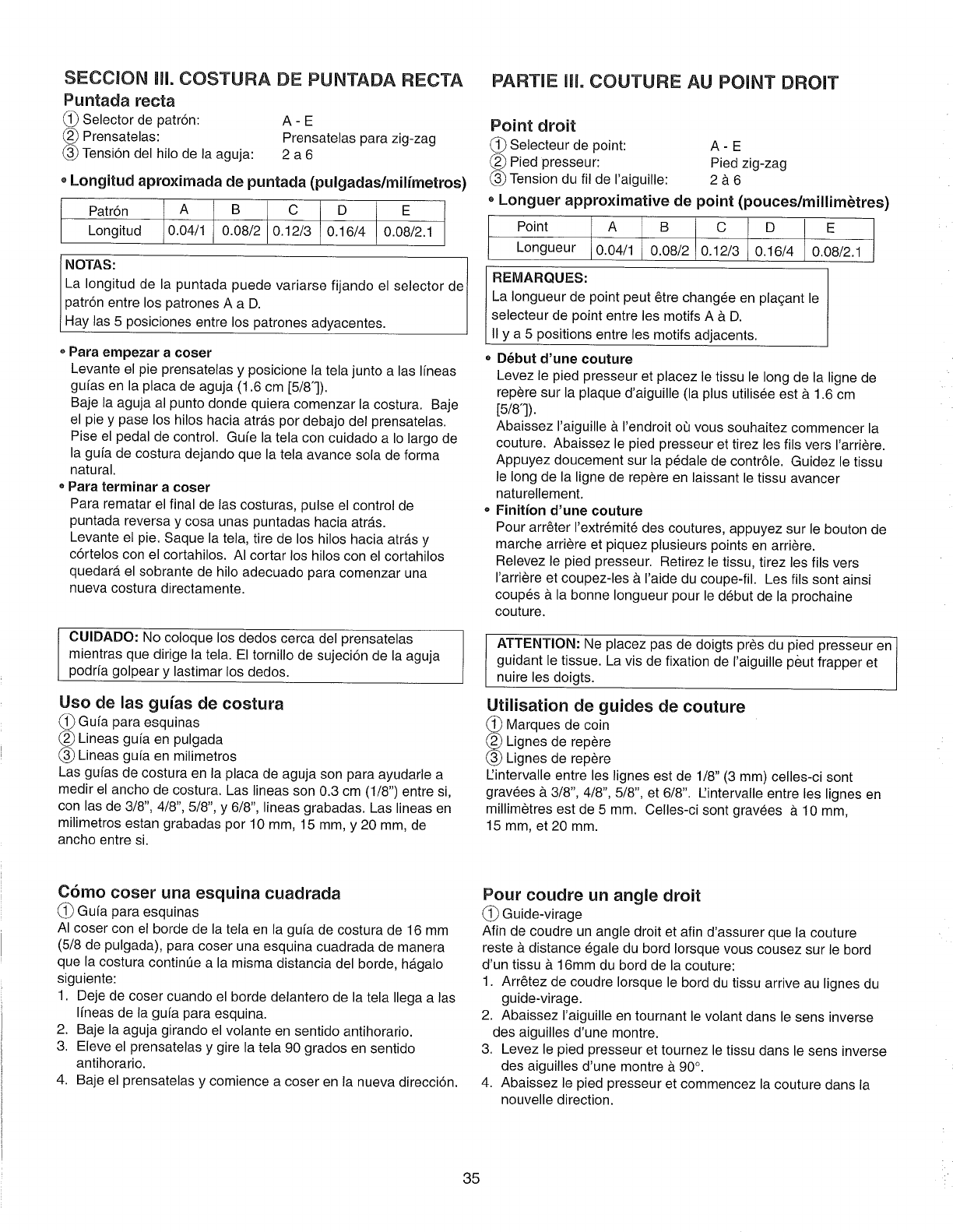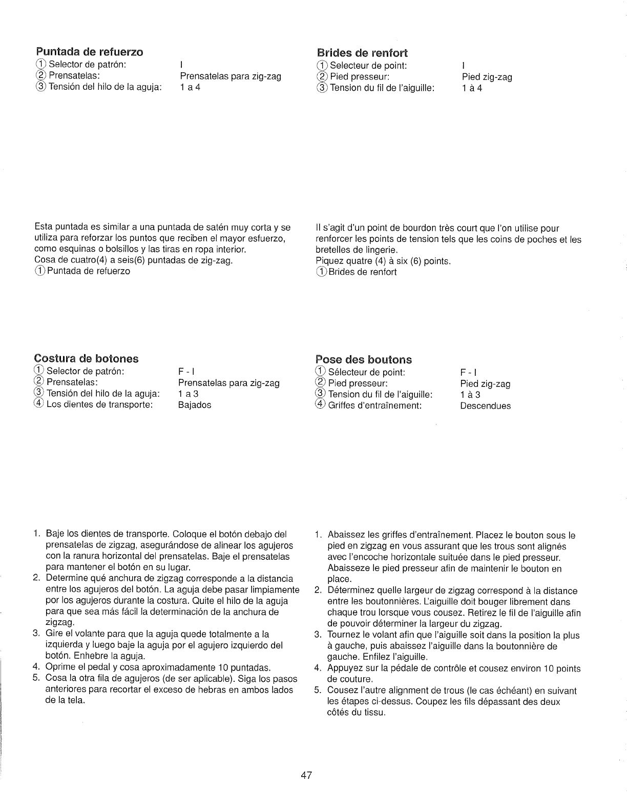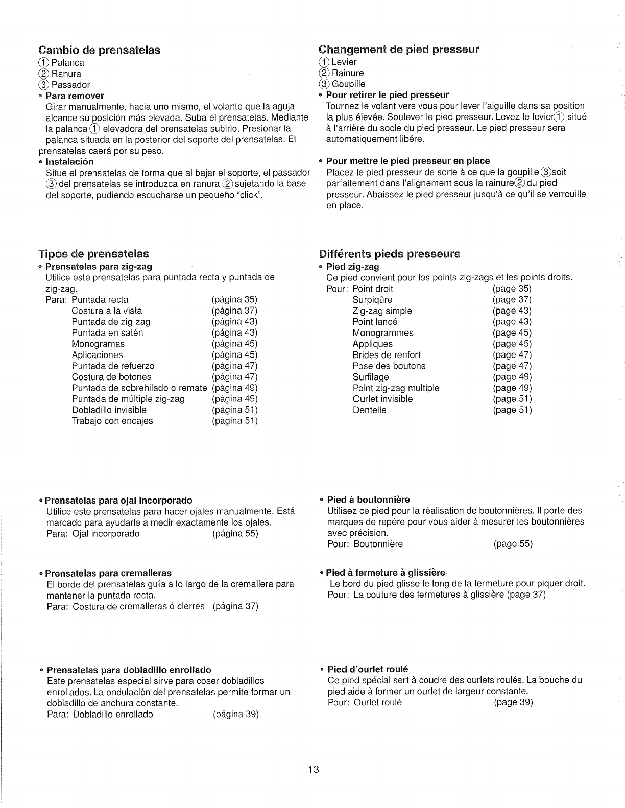 13. No tire de la tela ni la empuje mientras este cosiendo. La aguja podrfa desviarse y romperse.