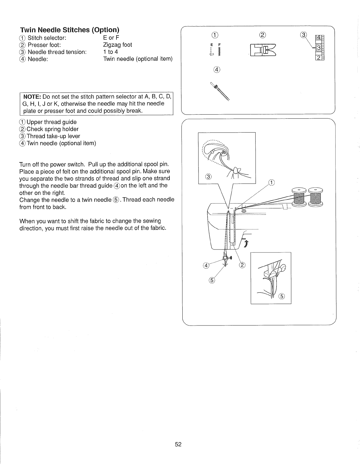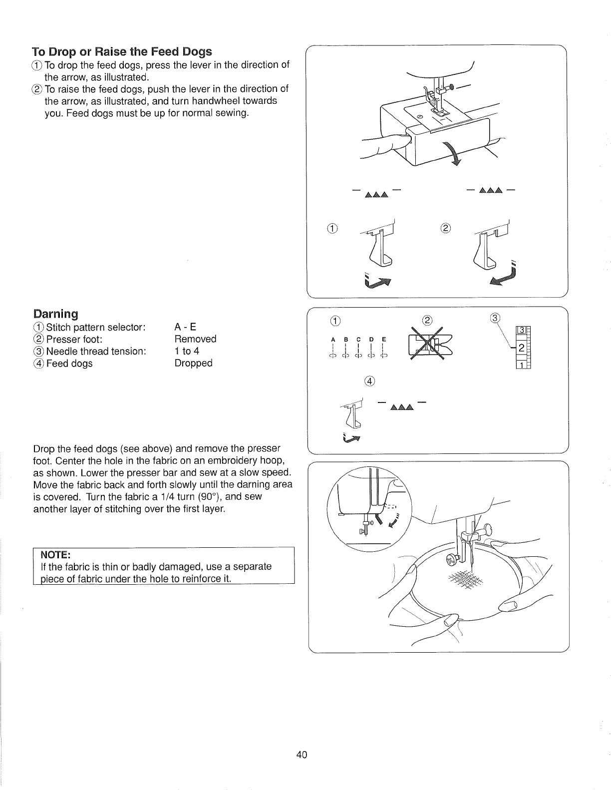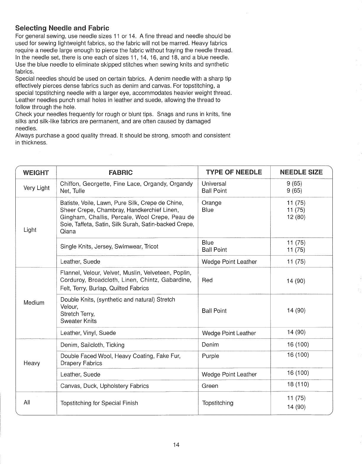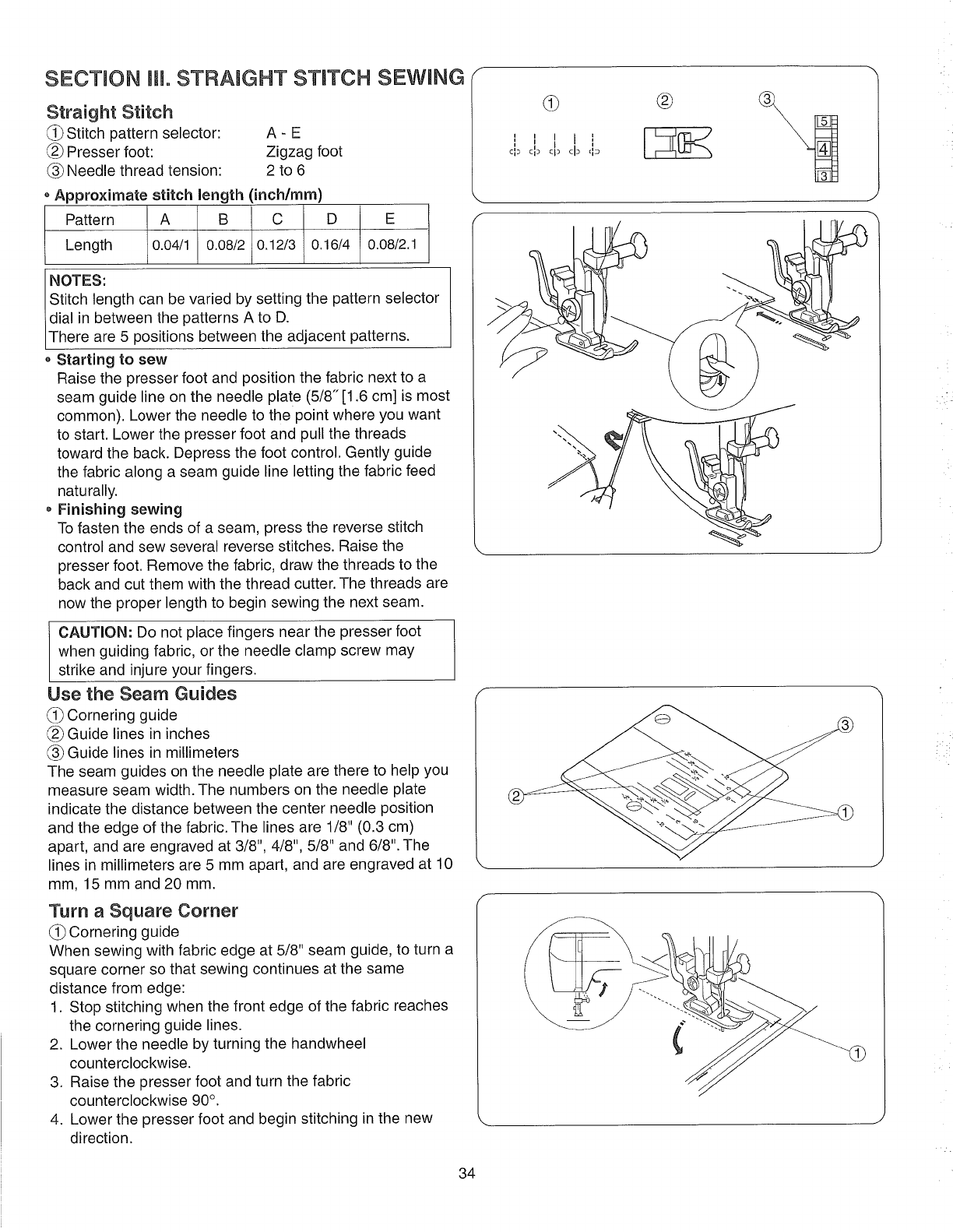 13. Do not pull or push fabric while stitching. It may deflect the needle causing it to break.