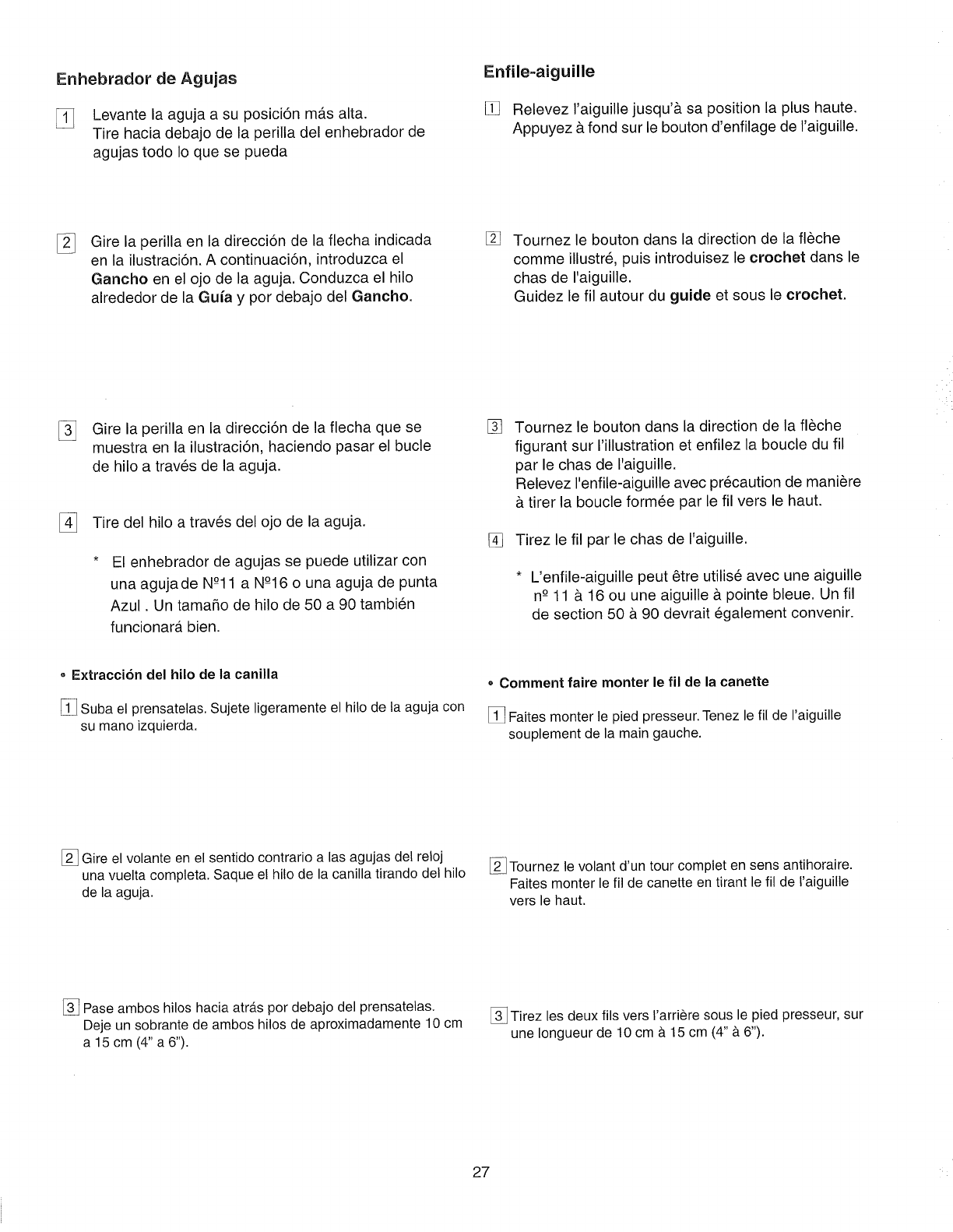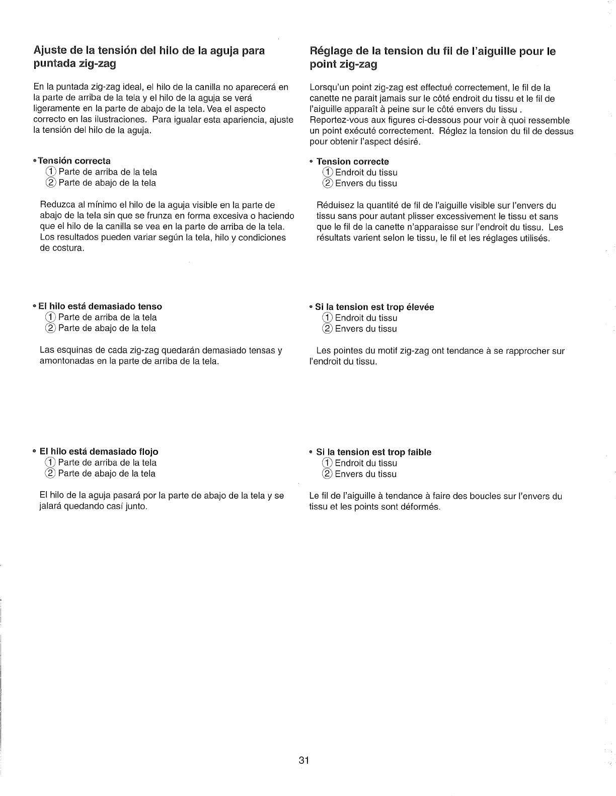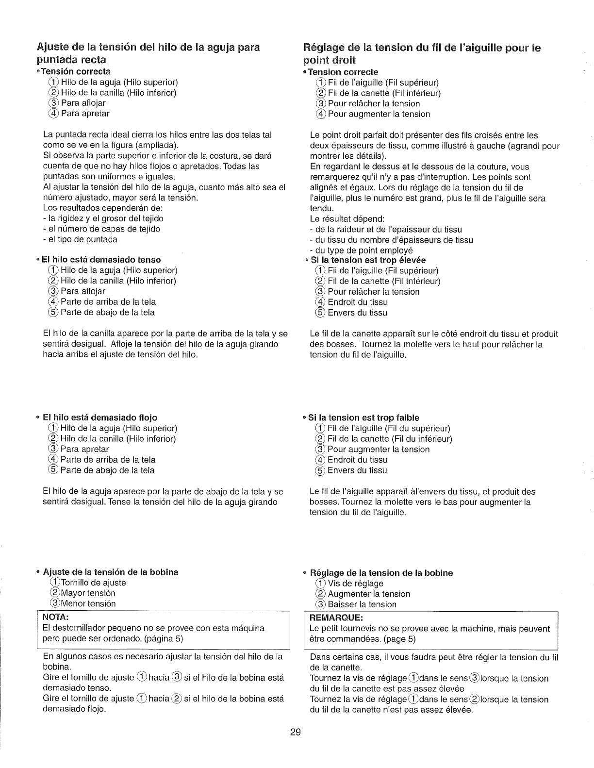 dos primeras ilustraciones, corrija el la tensi6n del hilo, tal como se muestra.