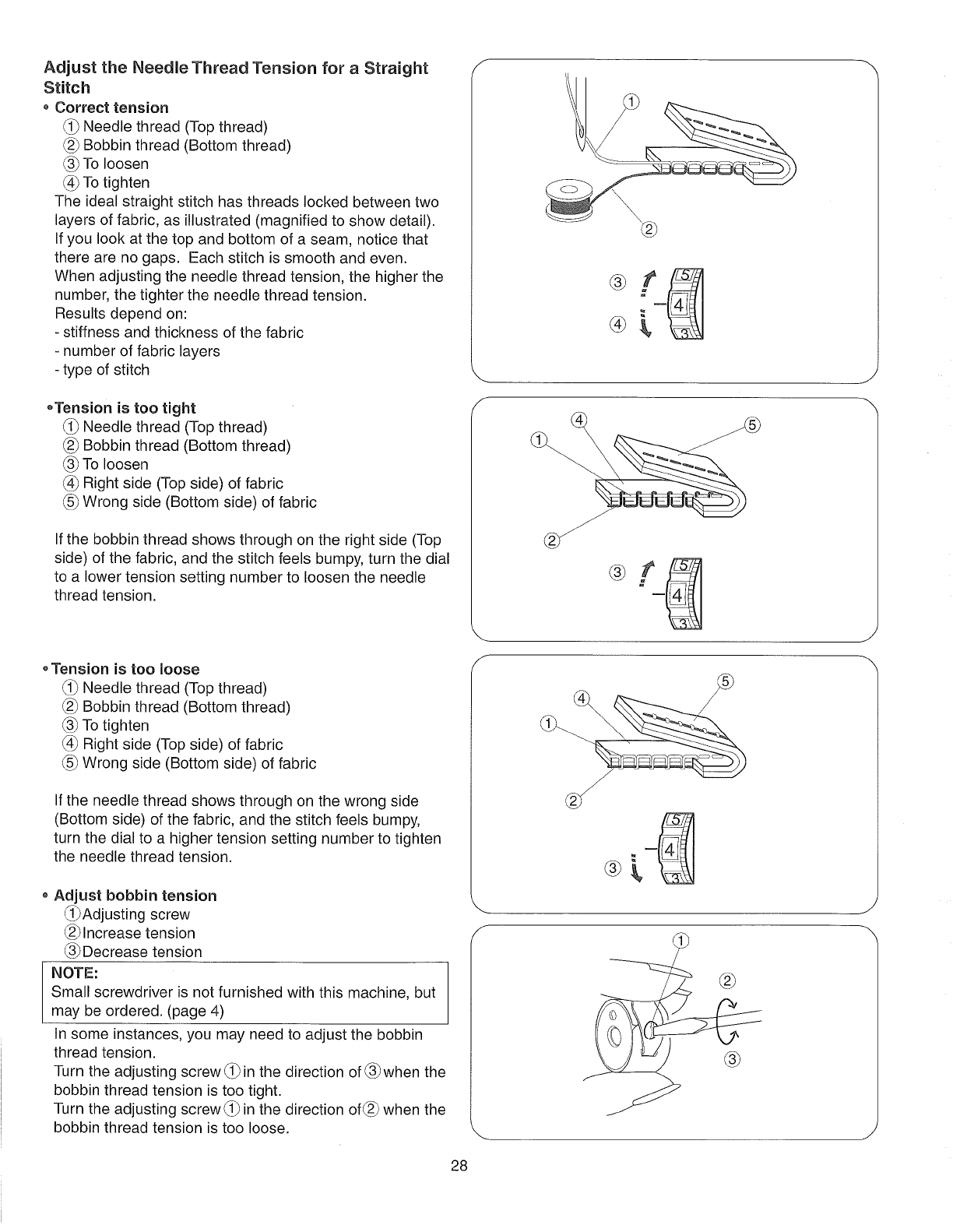 the top two, correct the thread tension as shown. BE SURE TO NOTE YOUR