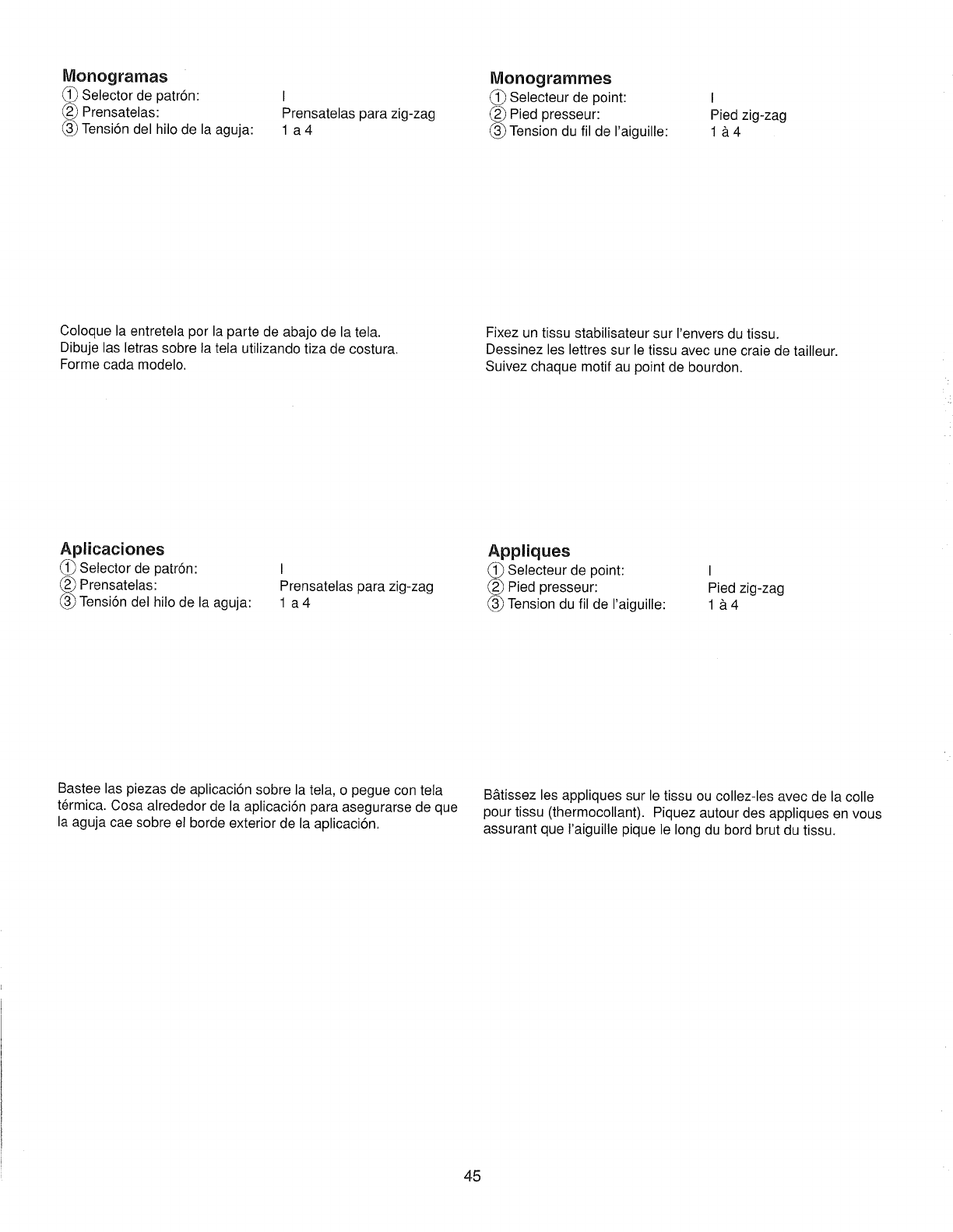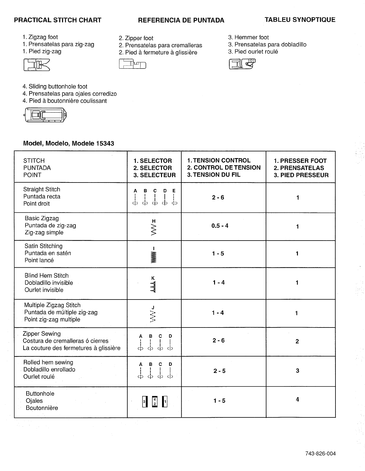 PRACTICAL STITCH CHART REFERENCIA DE PUNTADA TABLEU SYNOPTIQUE