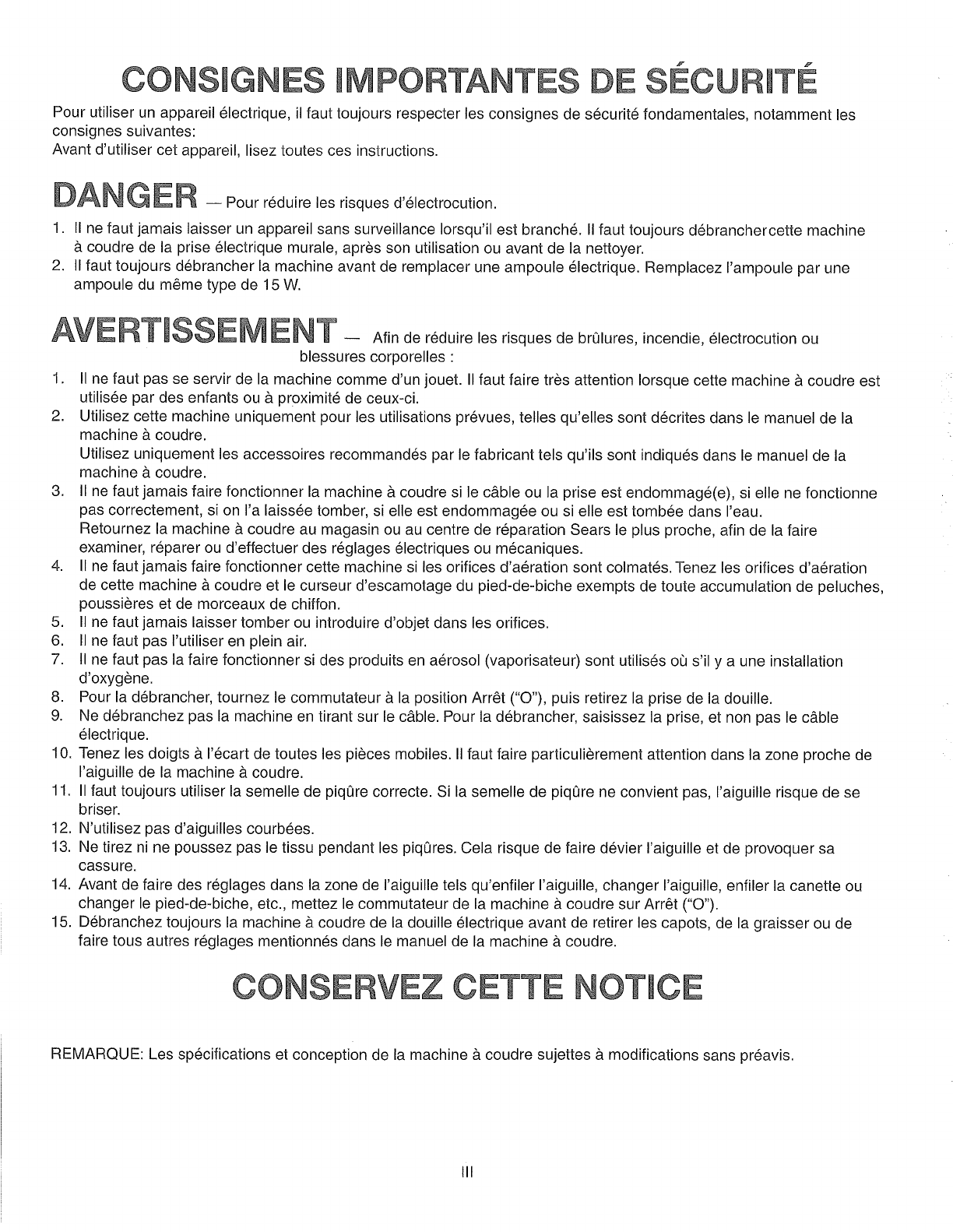 1. II ne faut passe servir de la machine comme d'un jouet. II faut faire tr6s attention Iorsque cette machine & coudre est