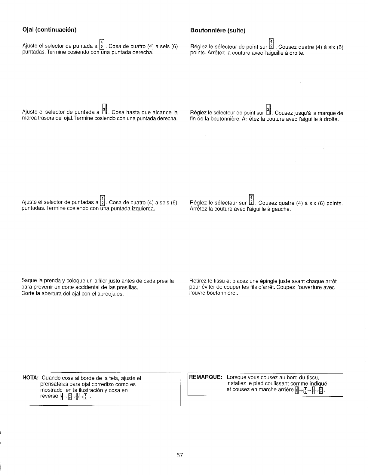 14. Apague esta m_.quina de coser ("O") cada vez que tenga que hacer ajustes en la zona de la aguja, como enhebrar