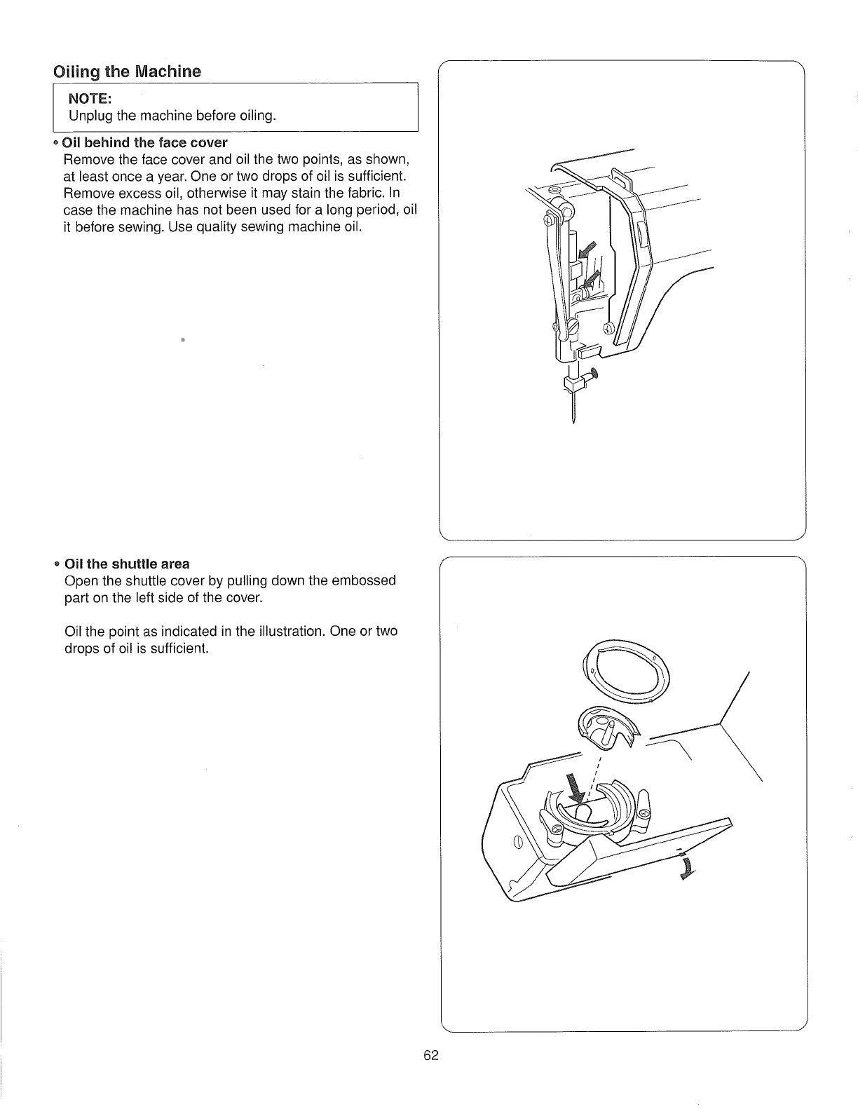 Plus vous utilisez votre machine, le plus souvent elle devra 6tre lubrifi_e. Si vous n'avez pas utilis6 votre machine pendant plusieurs