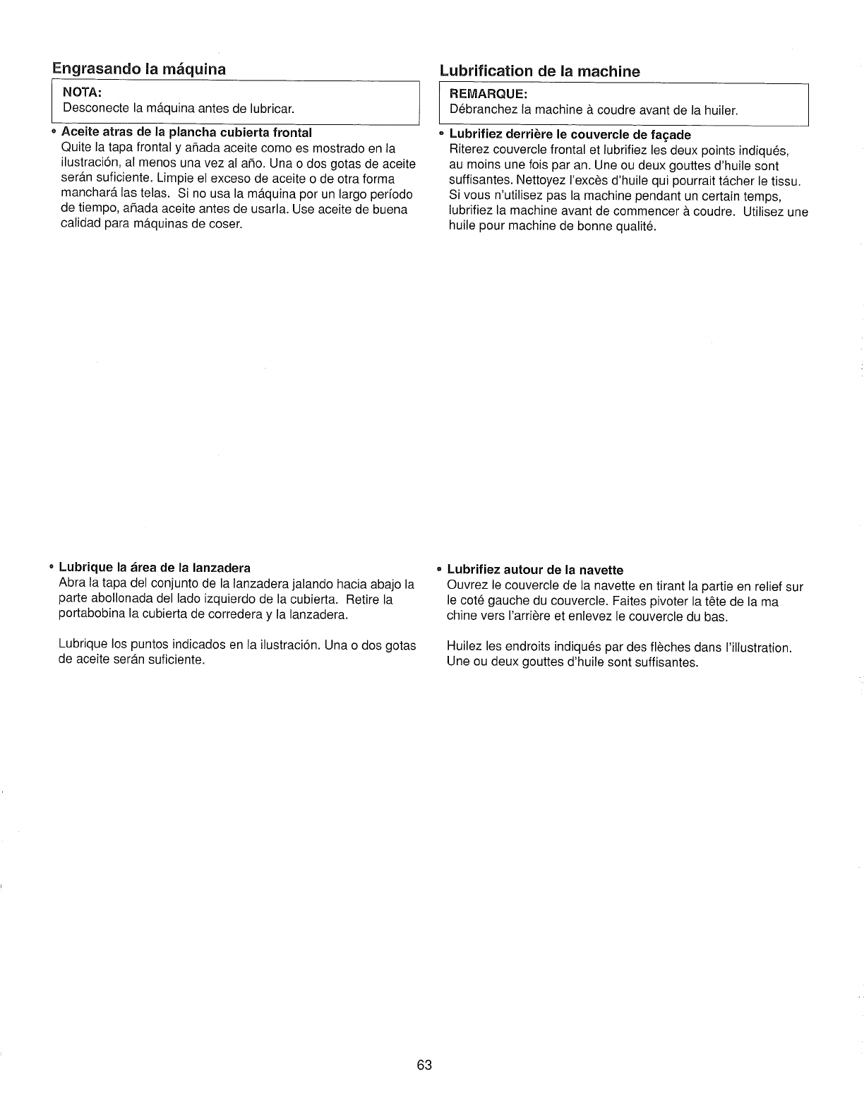 no funciona bien, lubrique la m_tquina. Peri6dicamente lubrique los puntos indicados en el manual de instrucciones. USE SOLAMENTE
