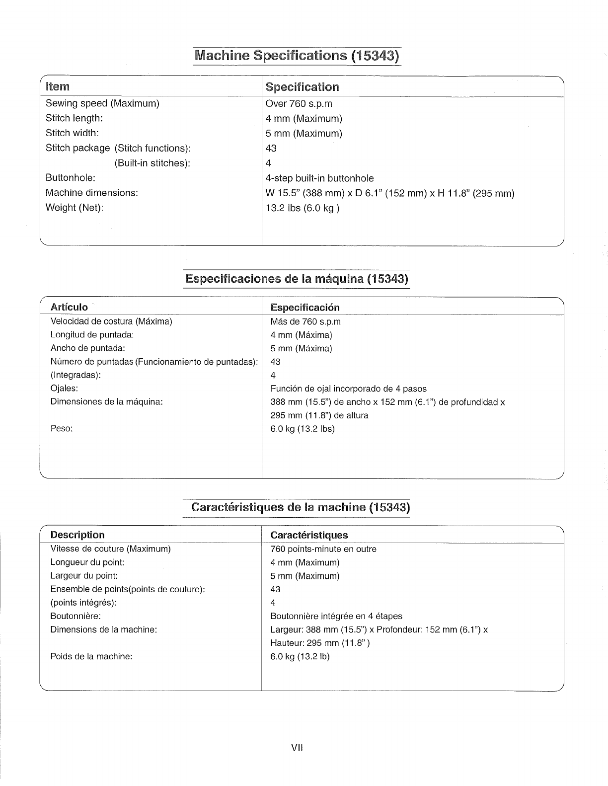 NOTE: Sewing machine design and specifications are subject to change without prior notice.