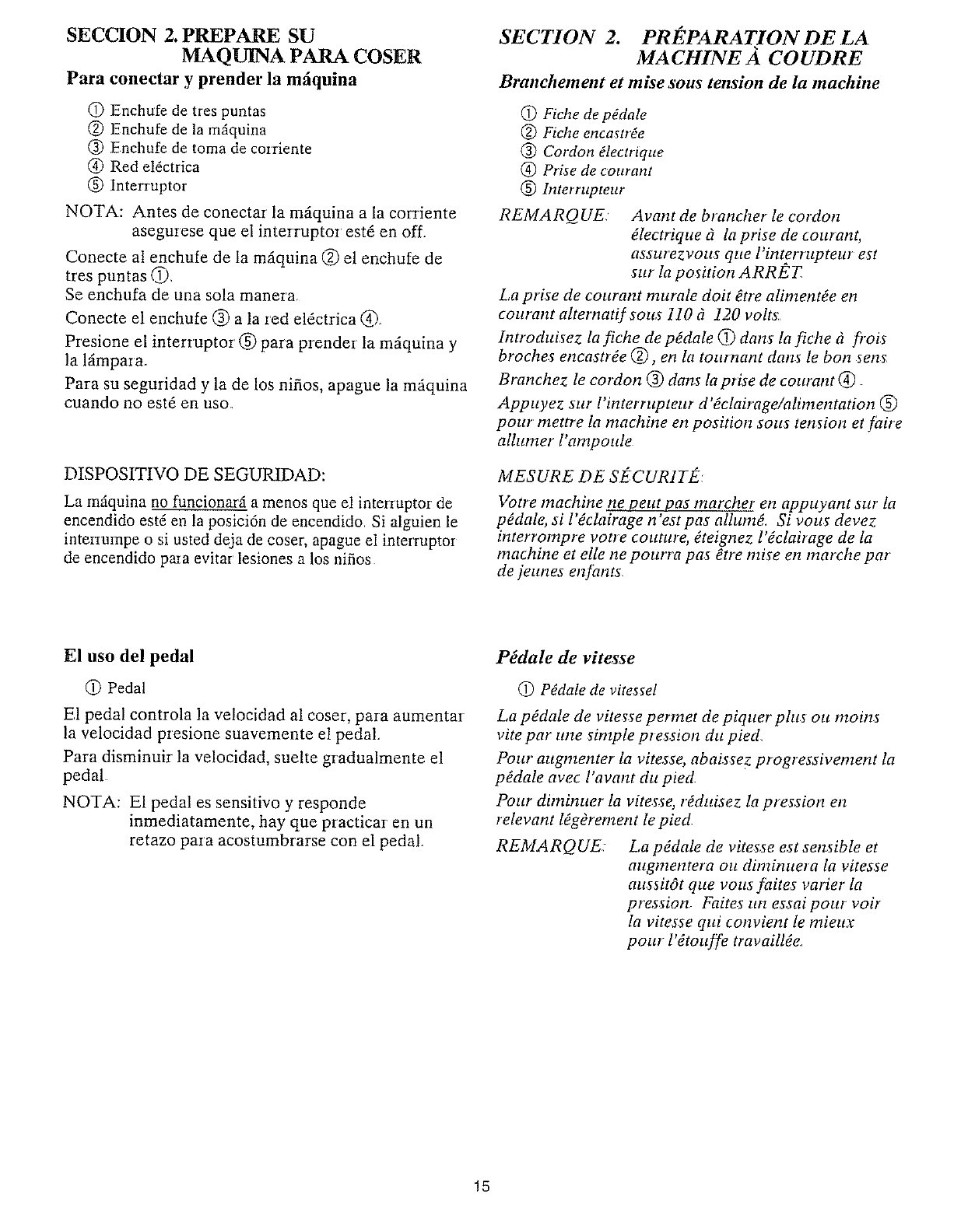 Mantenga las aberturas de ventilaci6n de la mfiquina de cose: y el pedal libres de acumulaci6n de pelusa, polvo y tela
