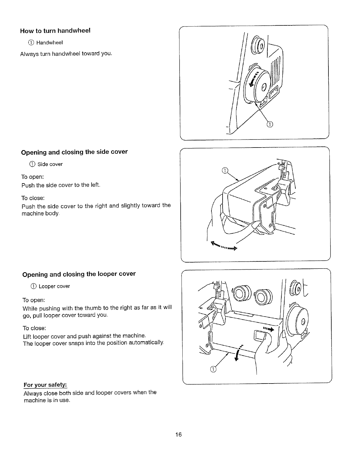 _5_ Always unplug the overlock machine from the electrical outlet when removing covers, lubricating, or when making any