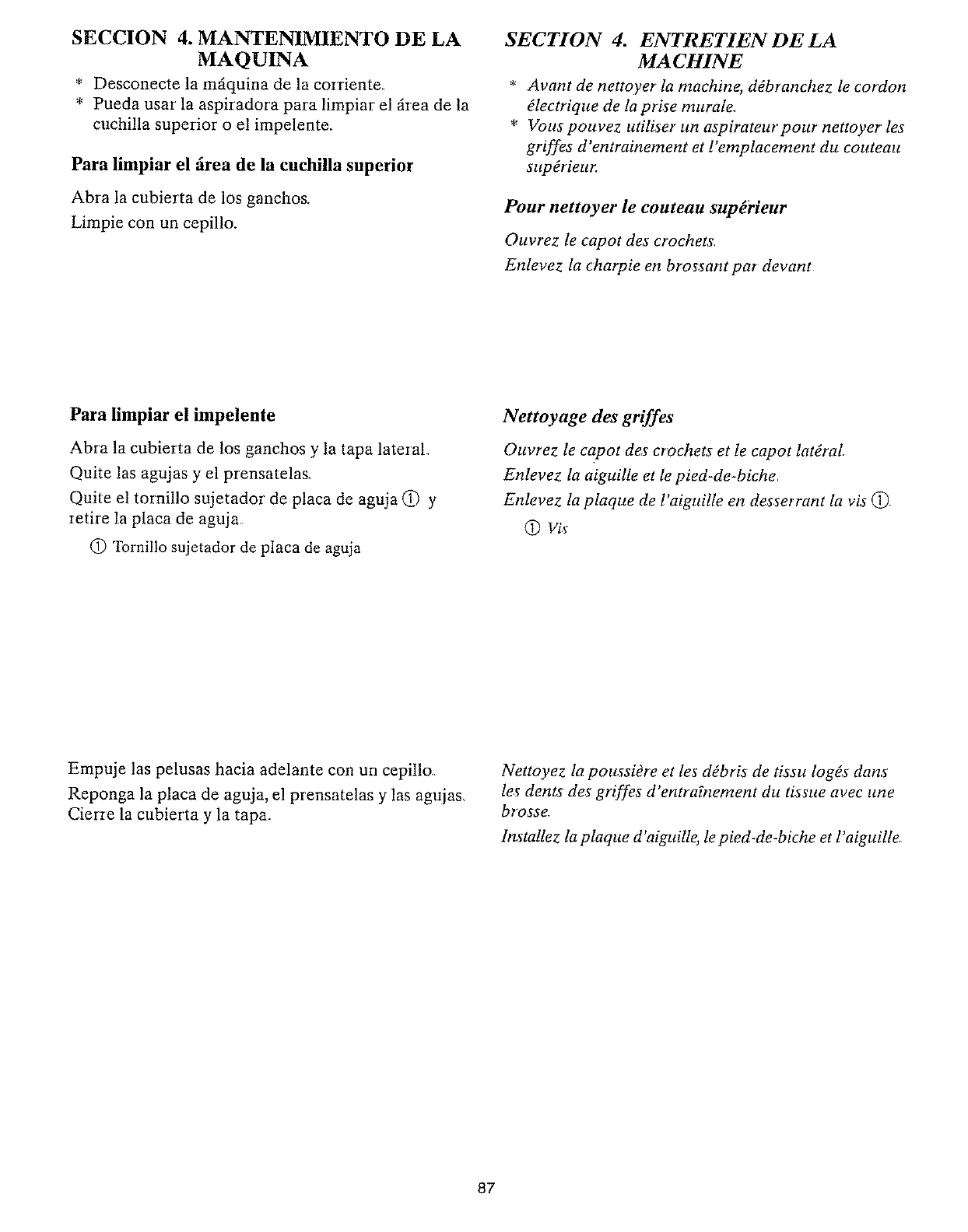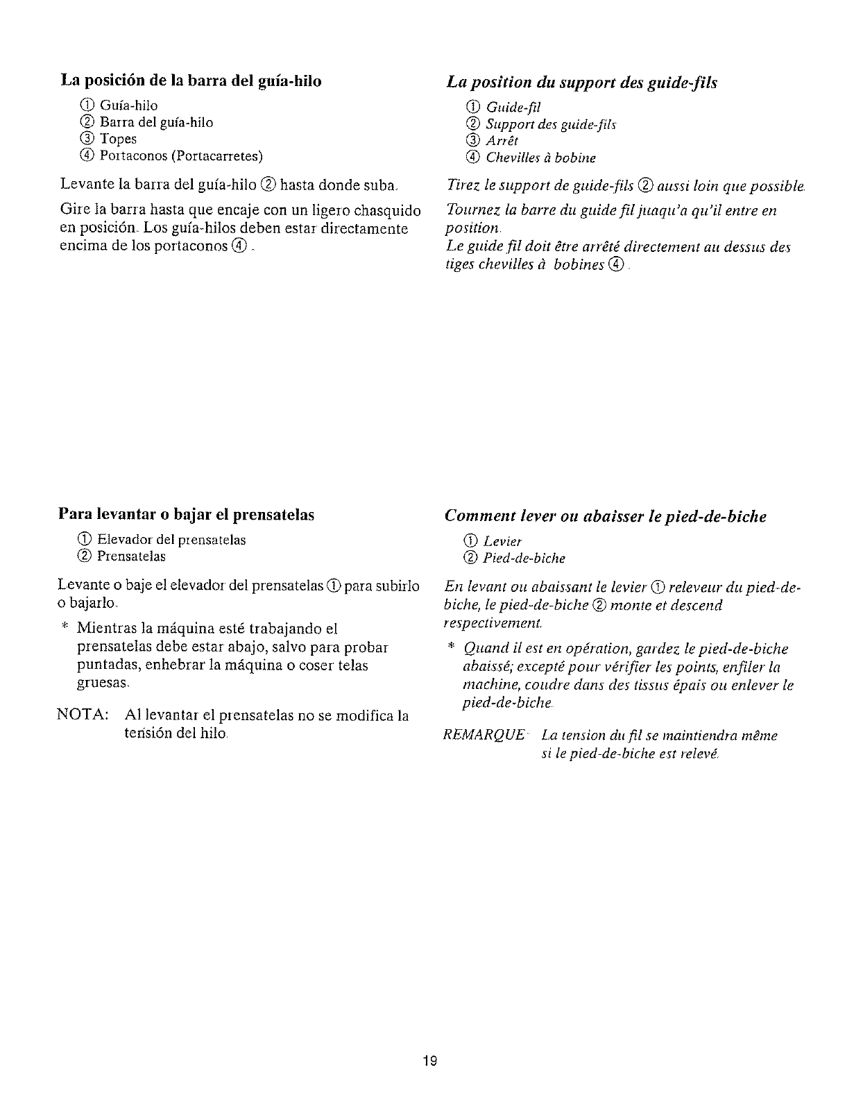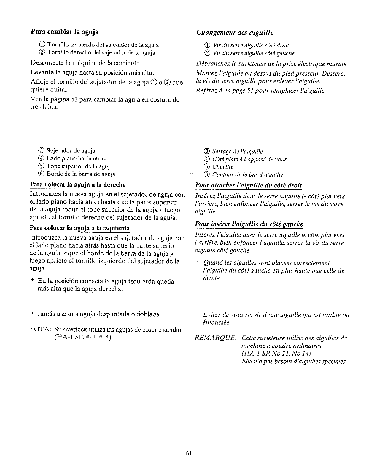 10 Mantenga los dedos alejados de las pieza m6viles. Se requiere cuidado especial alrededor de la aguja de la overlocL