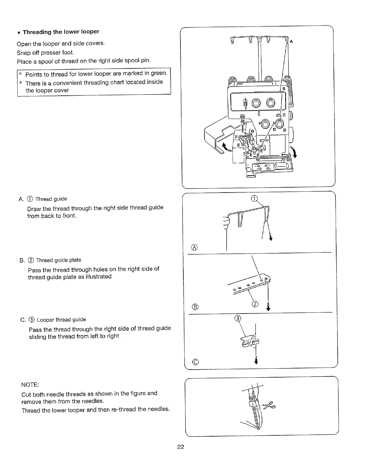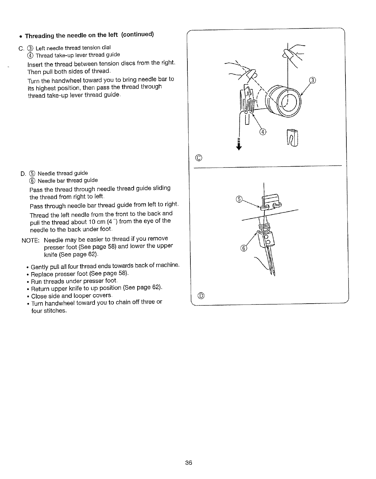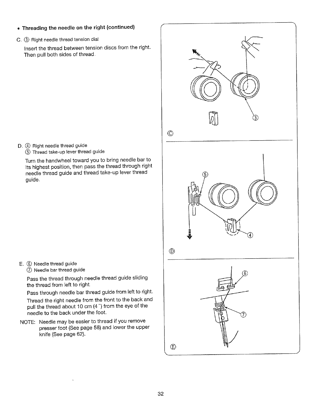 needle, threading loopers, or changing presser foot, and the like