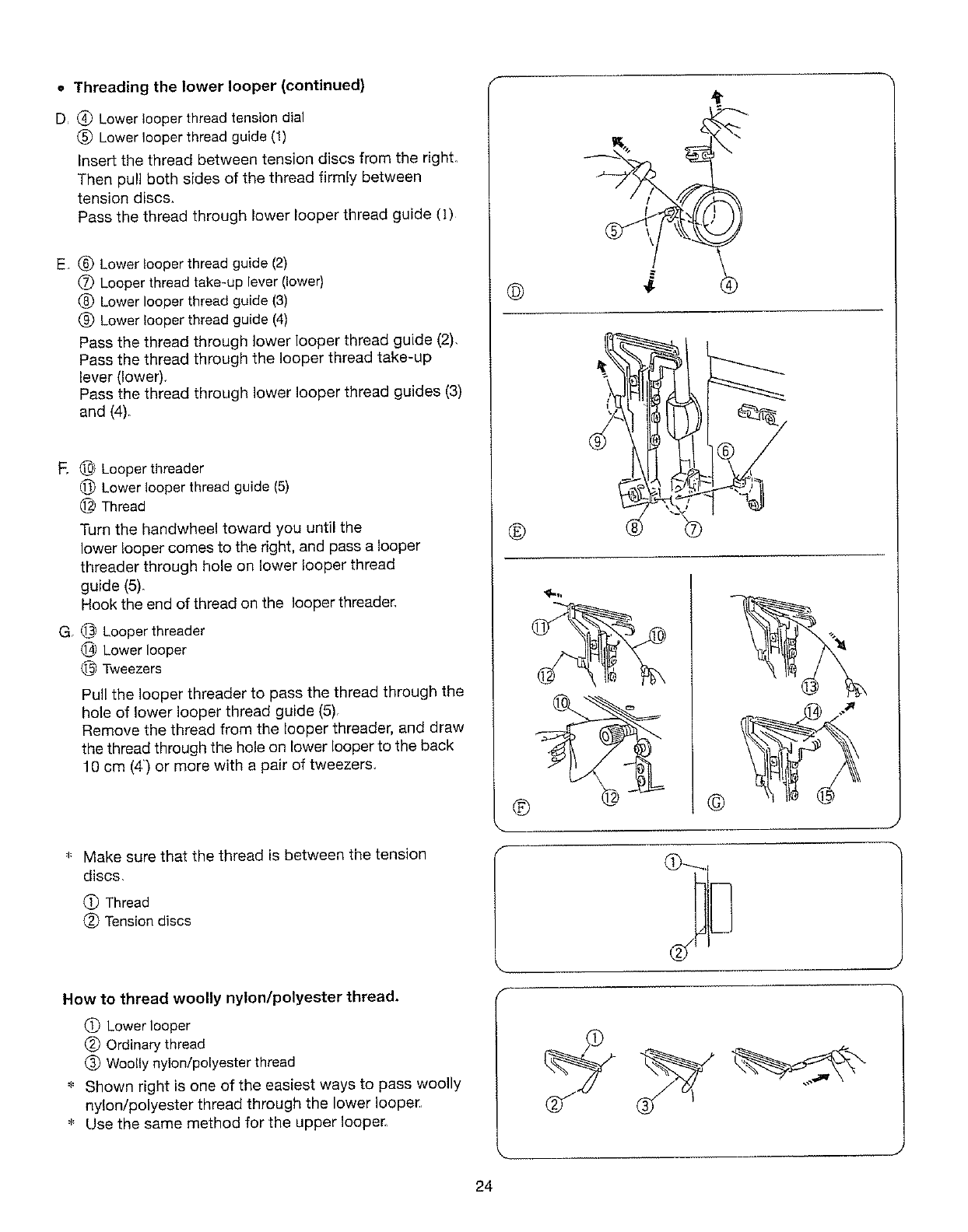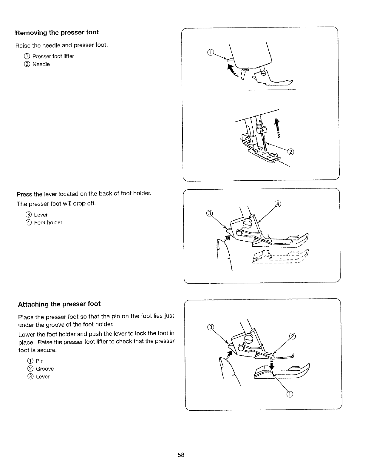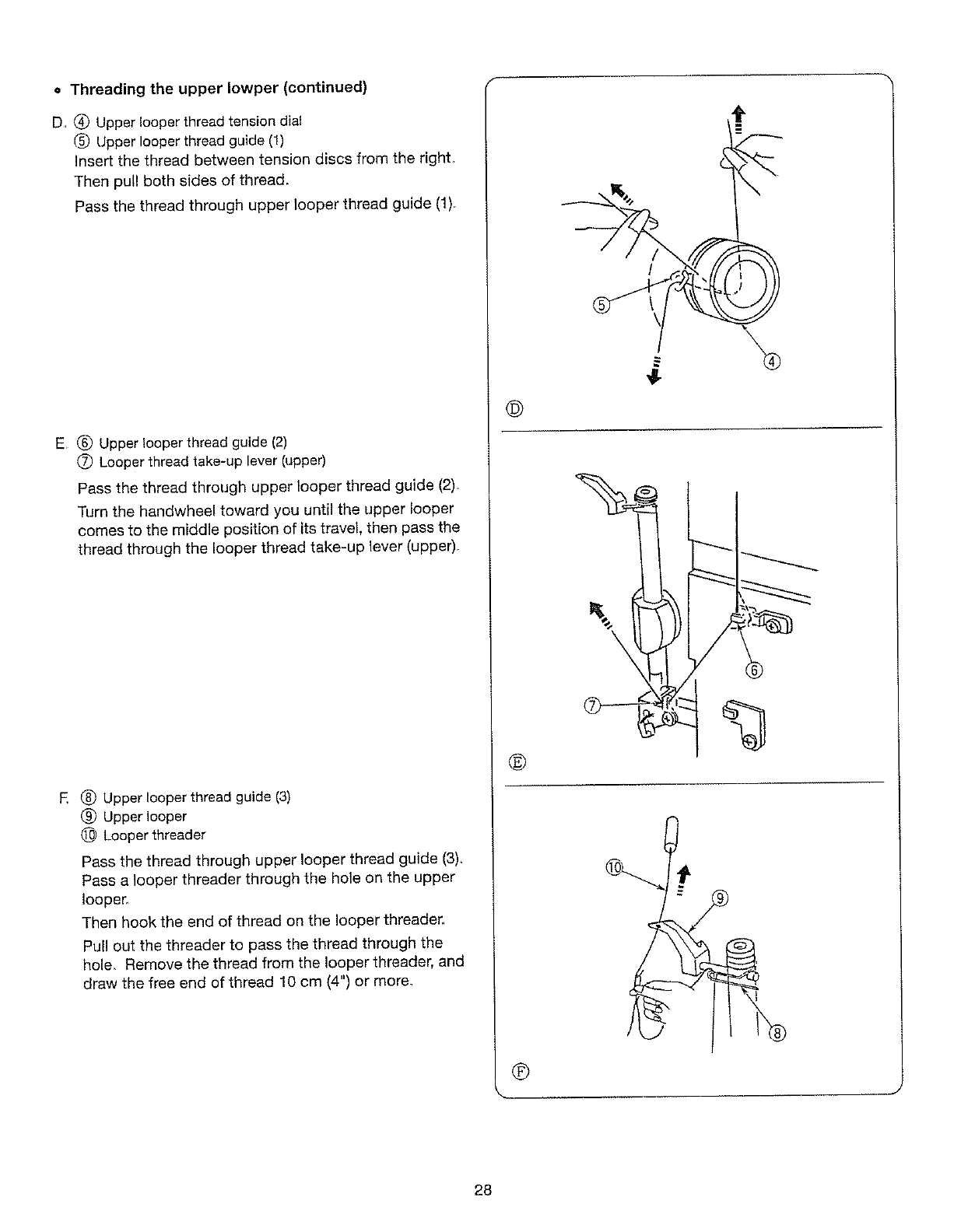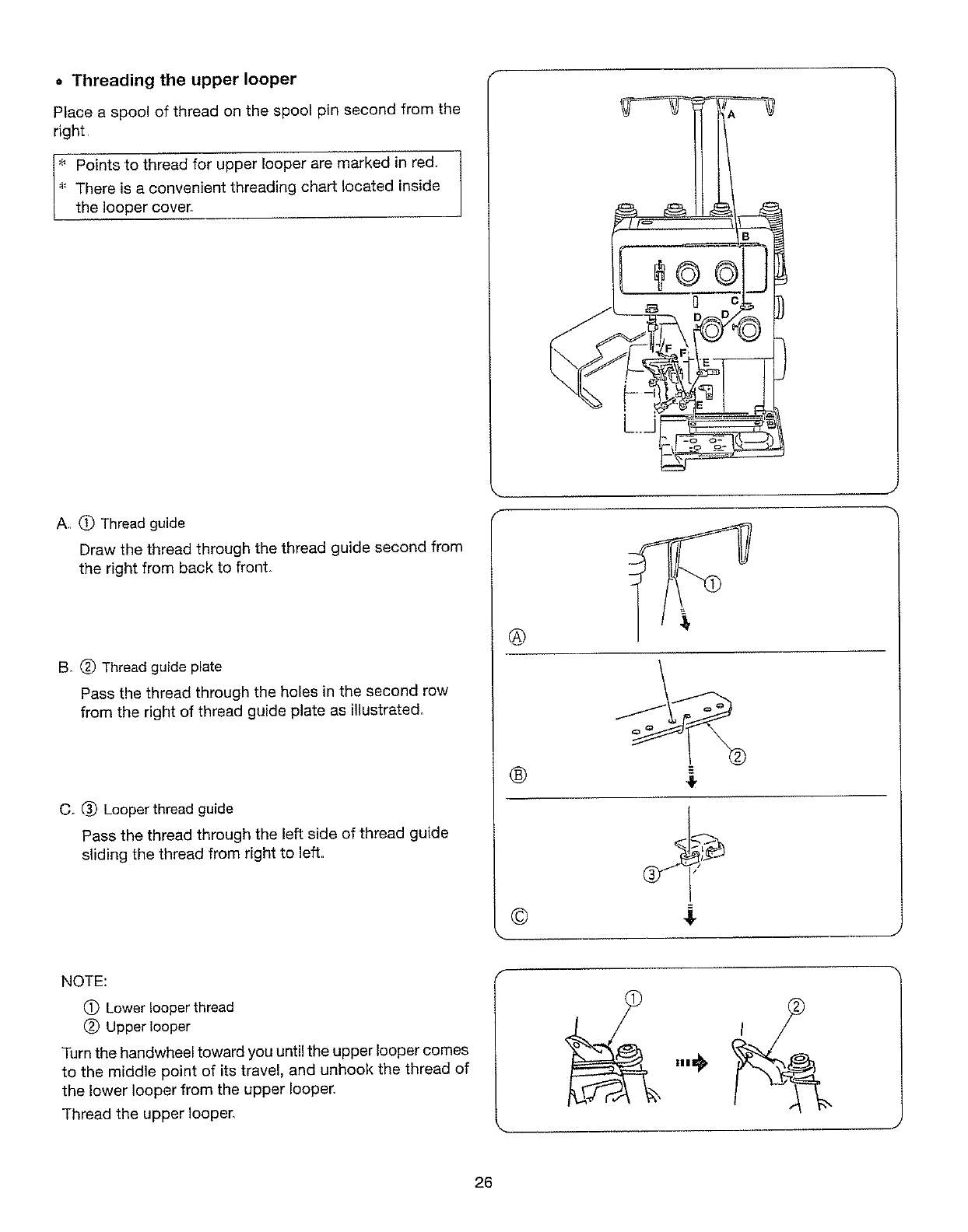 needle, threading loopers, or changing presser foot, and the like