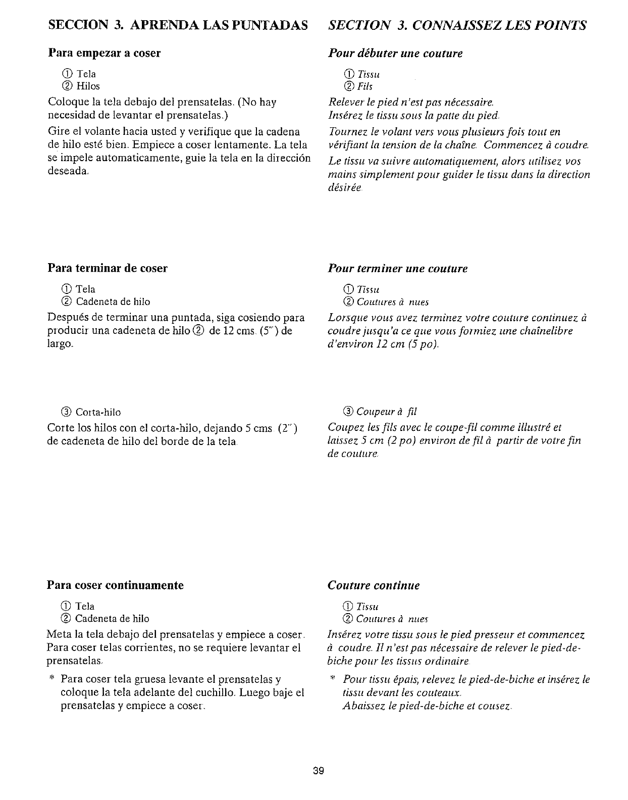 3 La aguja y/o el hilo no son aptos para e! trabajo