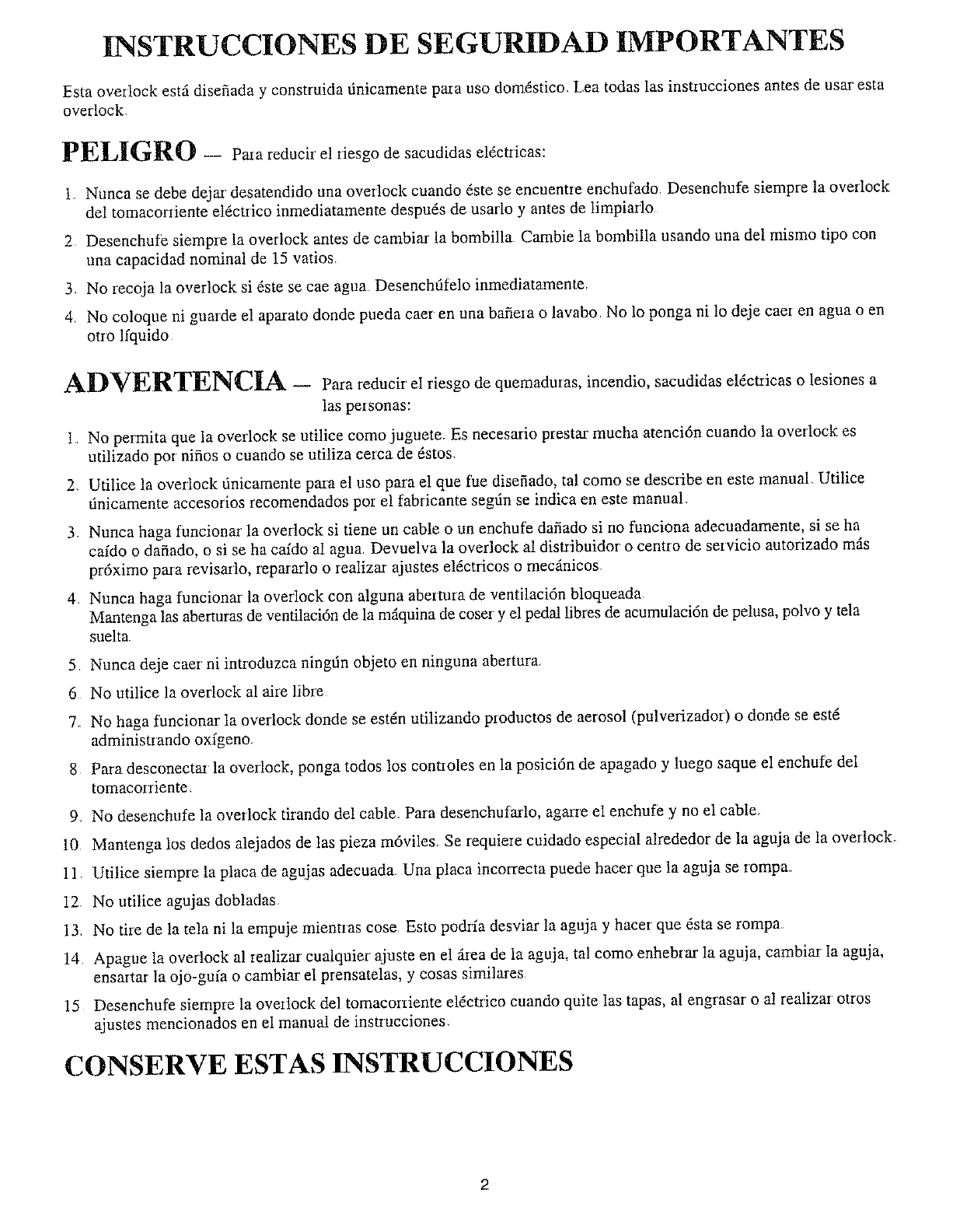 2. Utilice la overiock finicamente para el uso para el que fue disefiado, tal como se describe en este manual Utilice