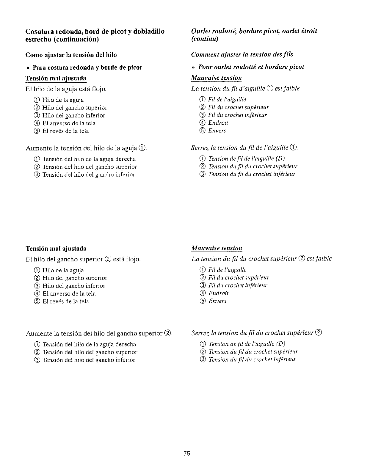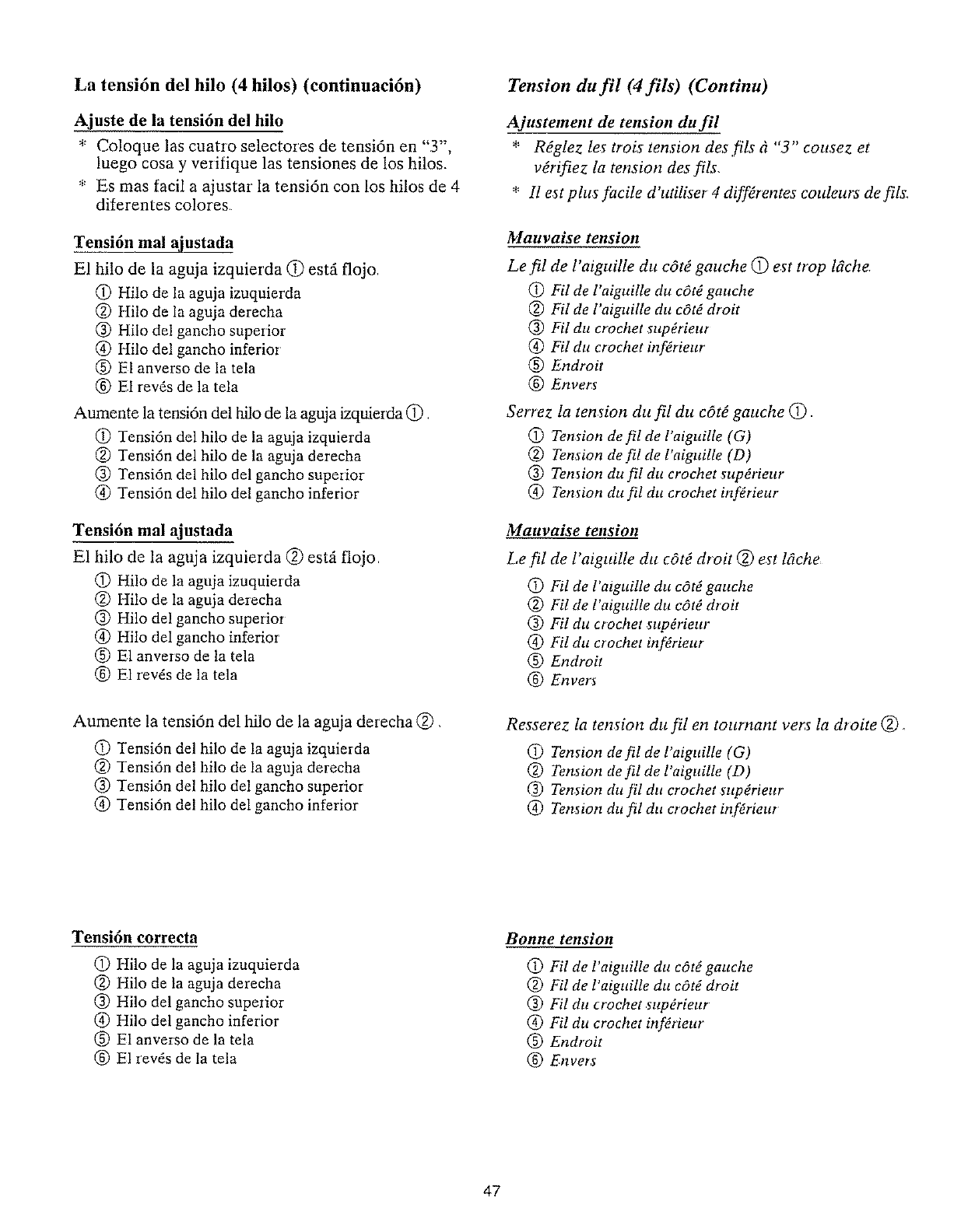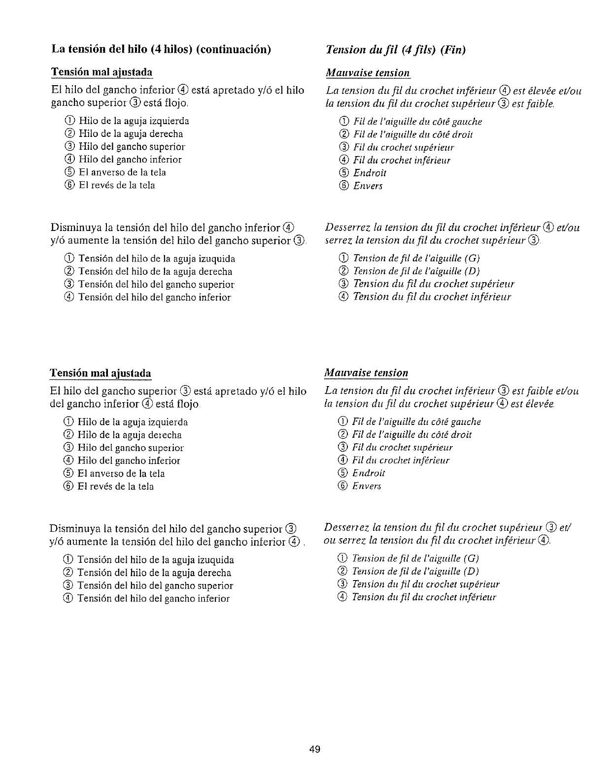 2 La ten_ion du fil de l'aiguUle est trop forte Pages 45 tl 5.5 et 69 gz8.5