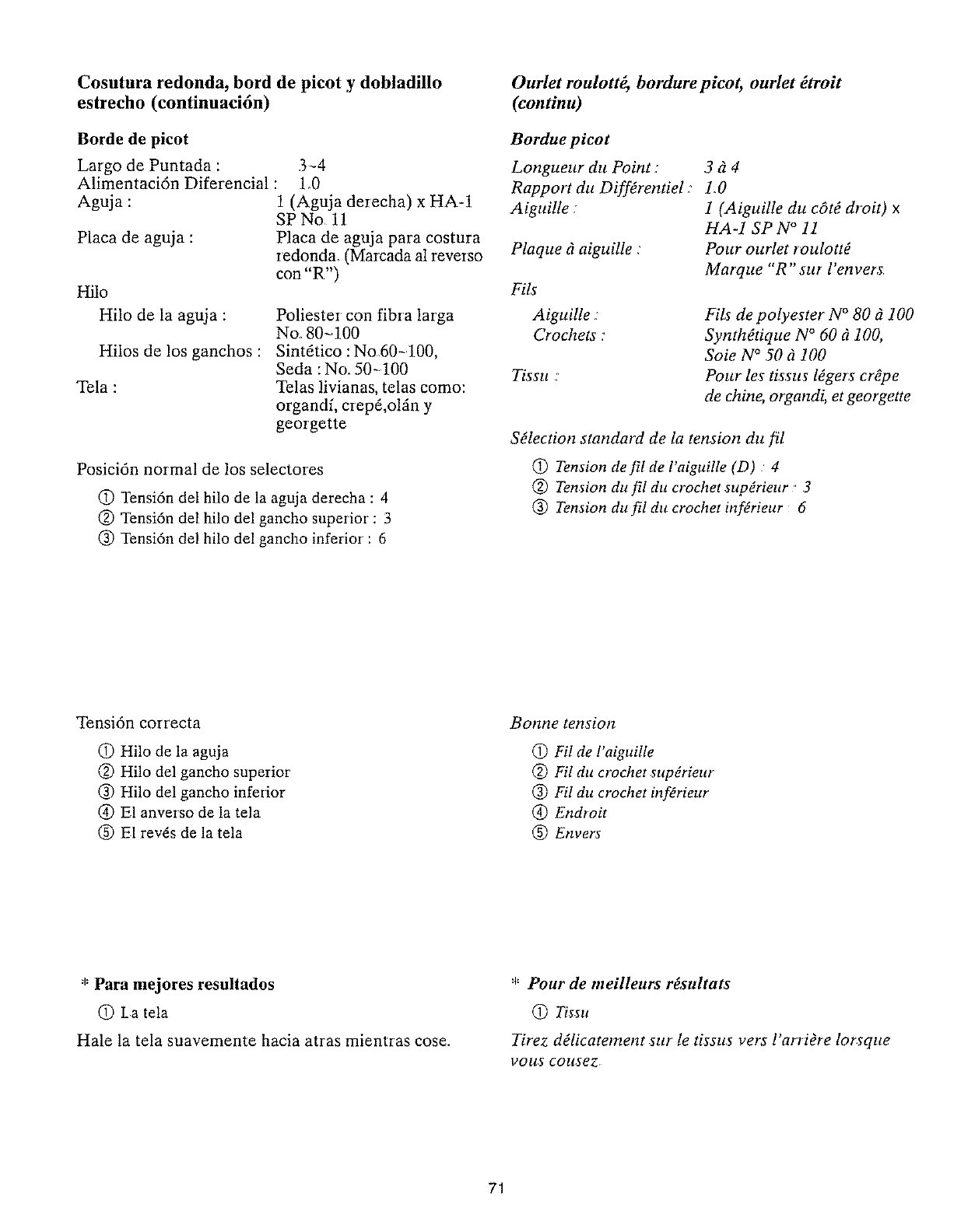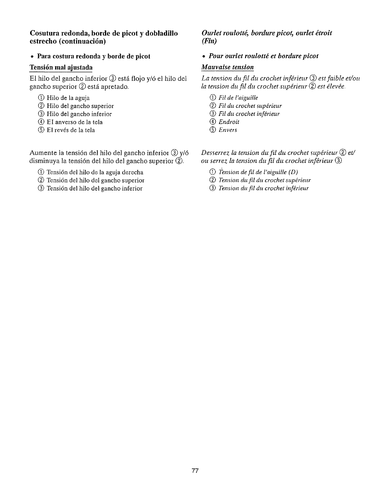12a couture se fronce. 1 La ten_ion du fil de l'aigaille et dtt crochet est trop Pager 45 d 55 et 69 d 85