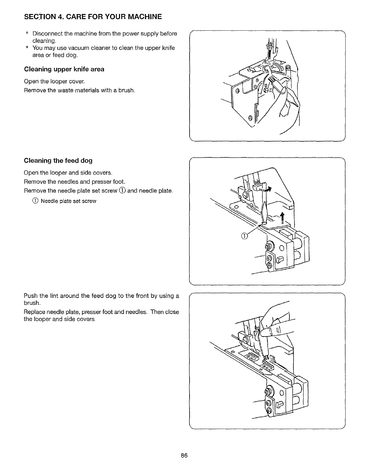 4. Never operate the overlock machine with any air opening blocked. Keep ventilation openings of the overlock machine