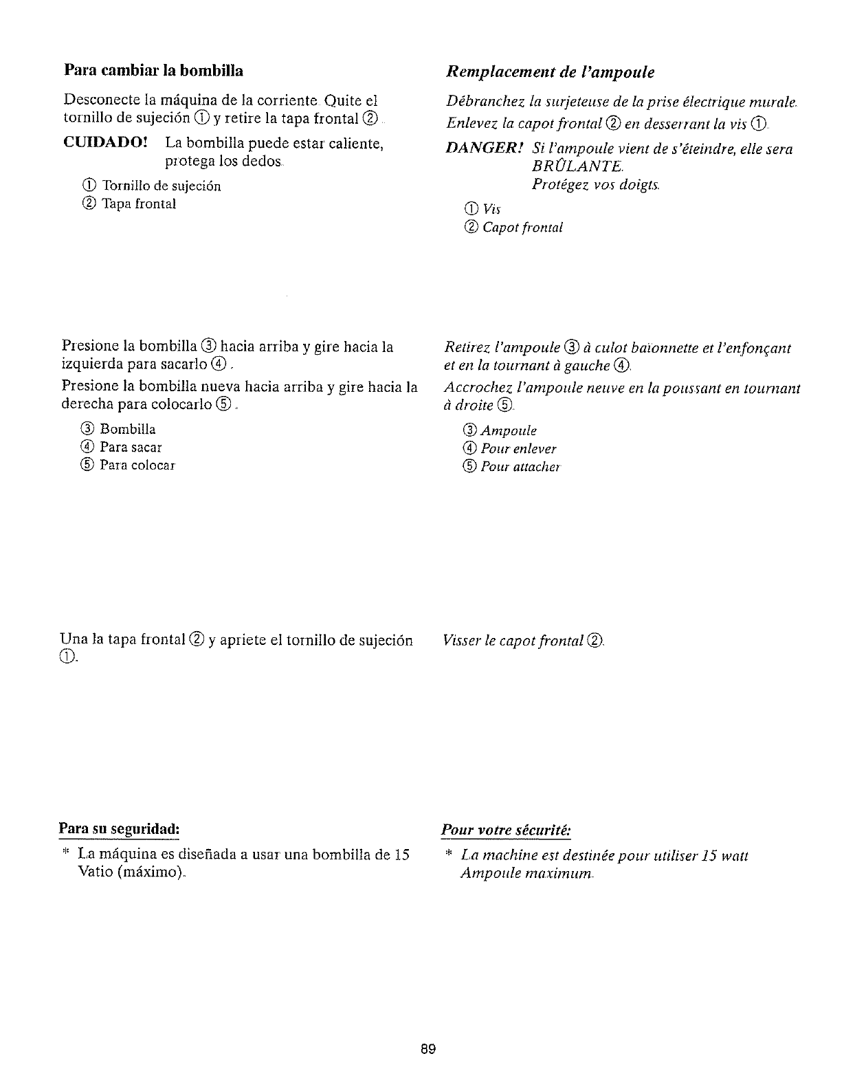 2 Desenchufe siempte la overlock antes de cambim la bombilla Cambie la bombilla usando una del mismo tipo con