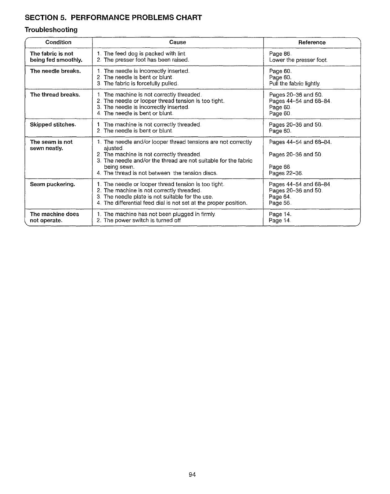 L'aiguille se rompt, 1 L 'aiguille n'est pas imtallde correctement Page 61