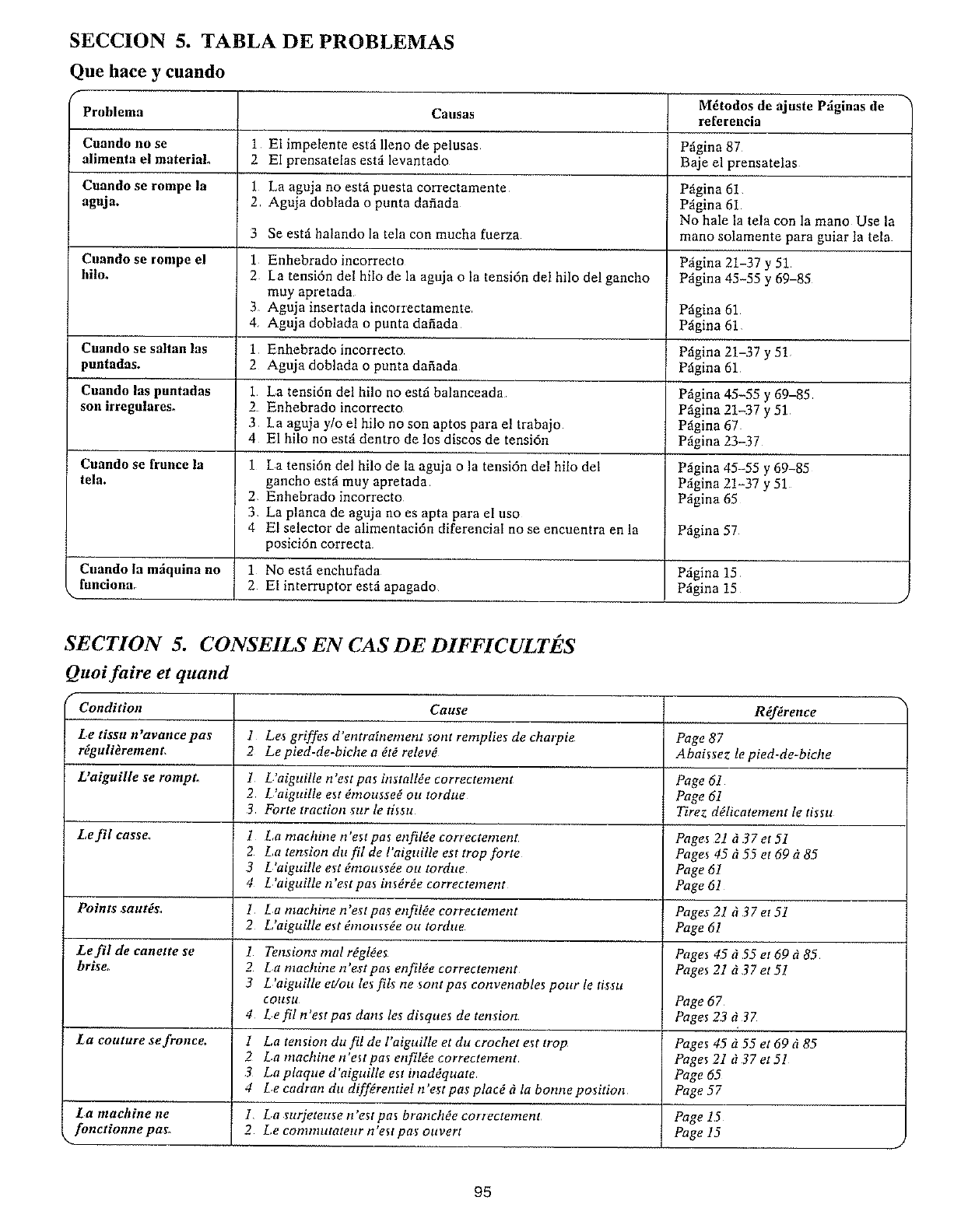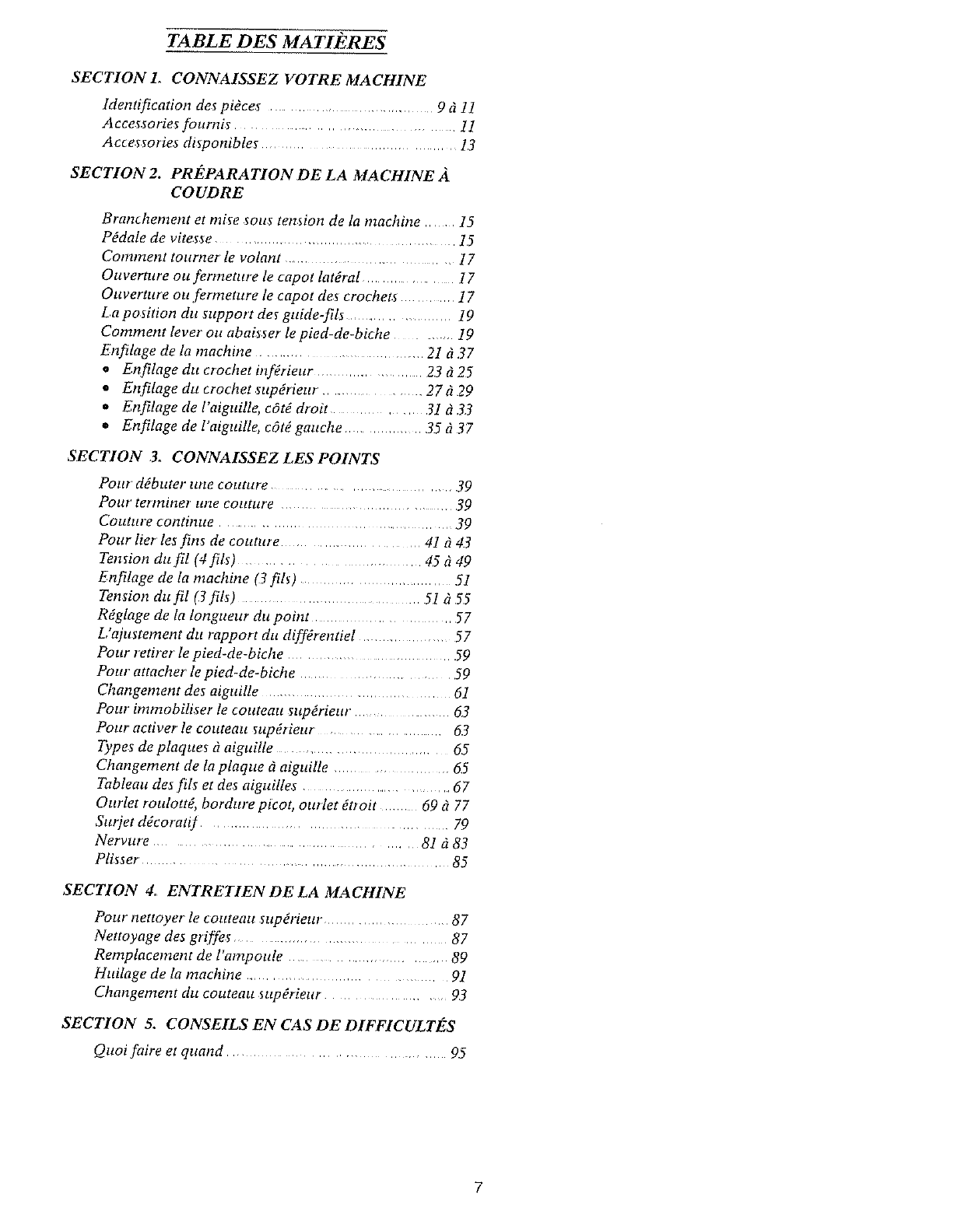 Points sautgs,, 1 £ a machine n'e_t pas enfilOe correctement Pages 21 tl 37 et 51