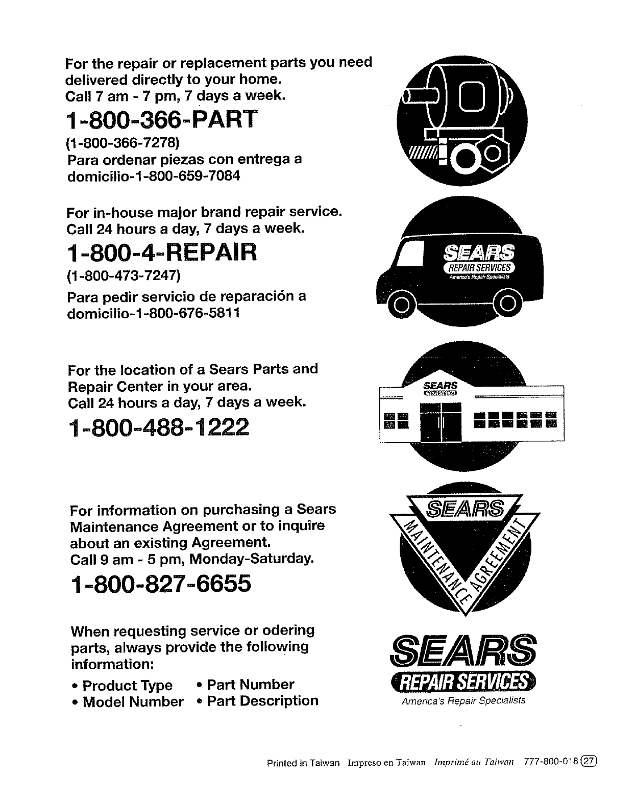For information on purchasing a Sears