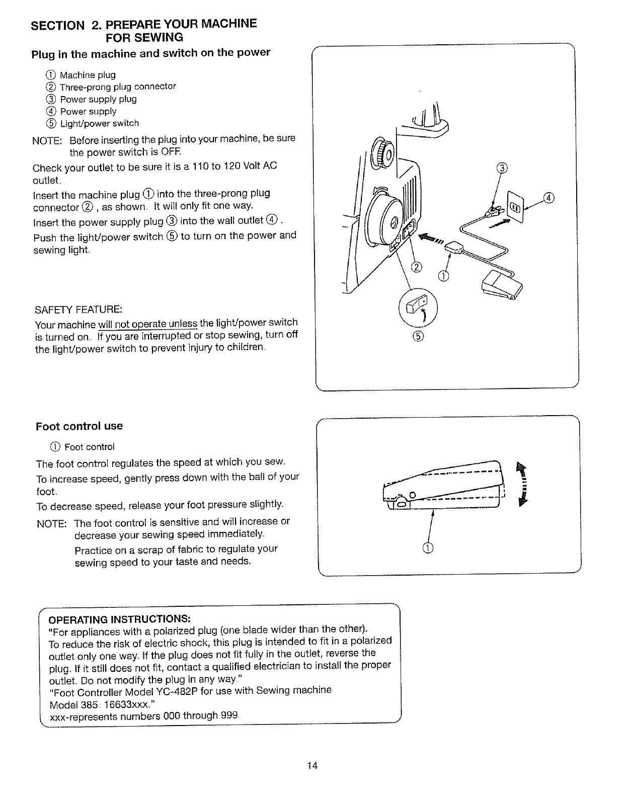 14_ Switch the machine off when making any adjustment in the needle area, such as threading needle, changing