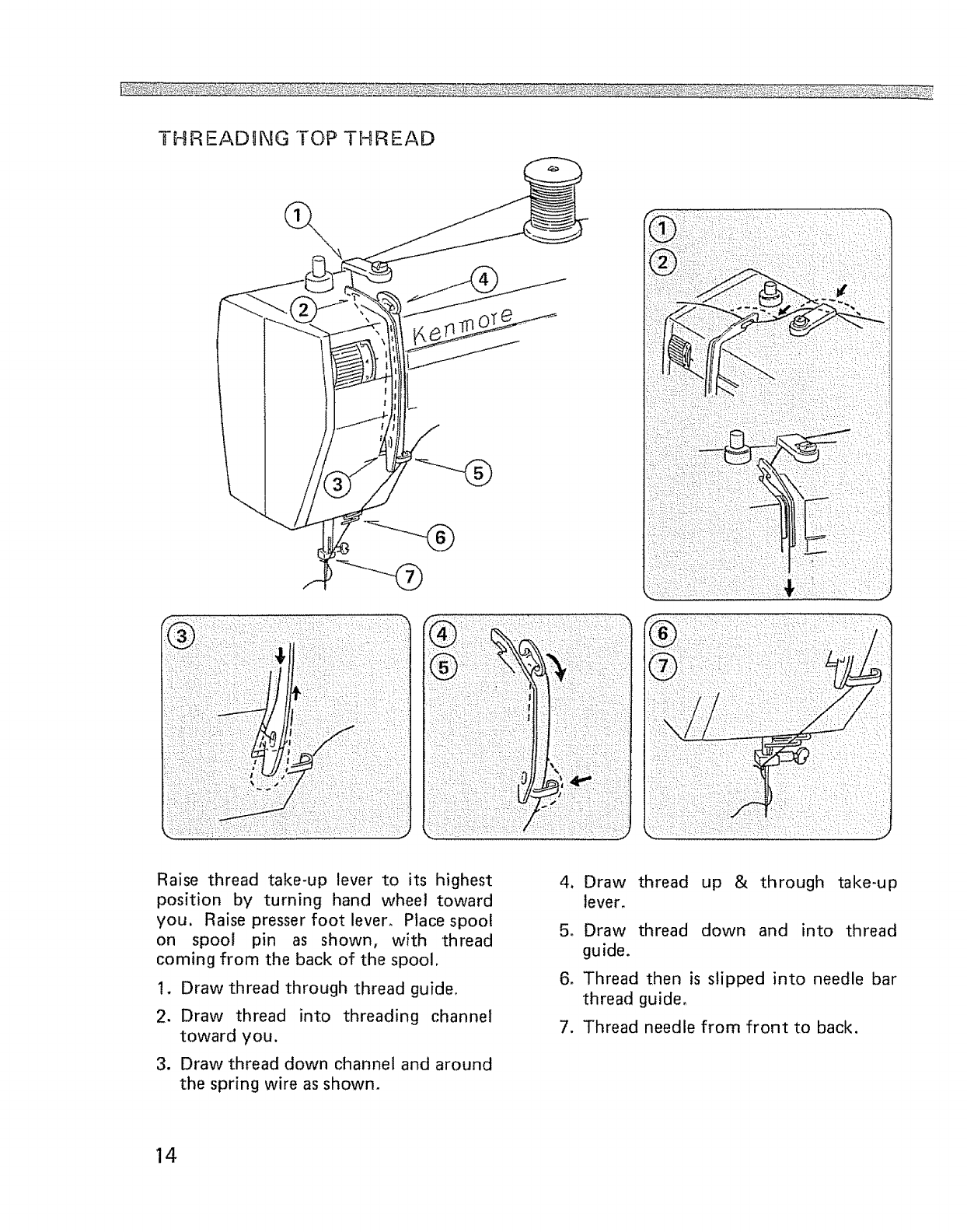 Specific instructions are given on threading, tension