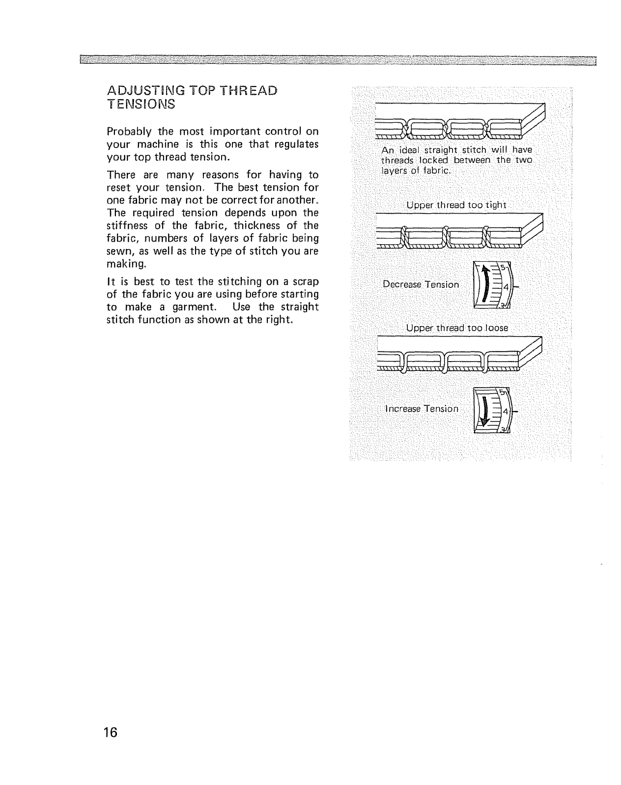 Adjusting top thread tensions ............... 16