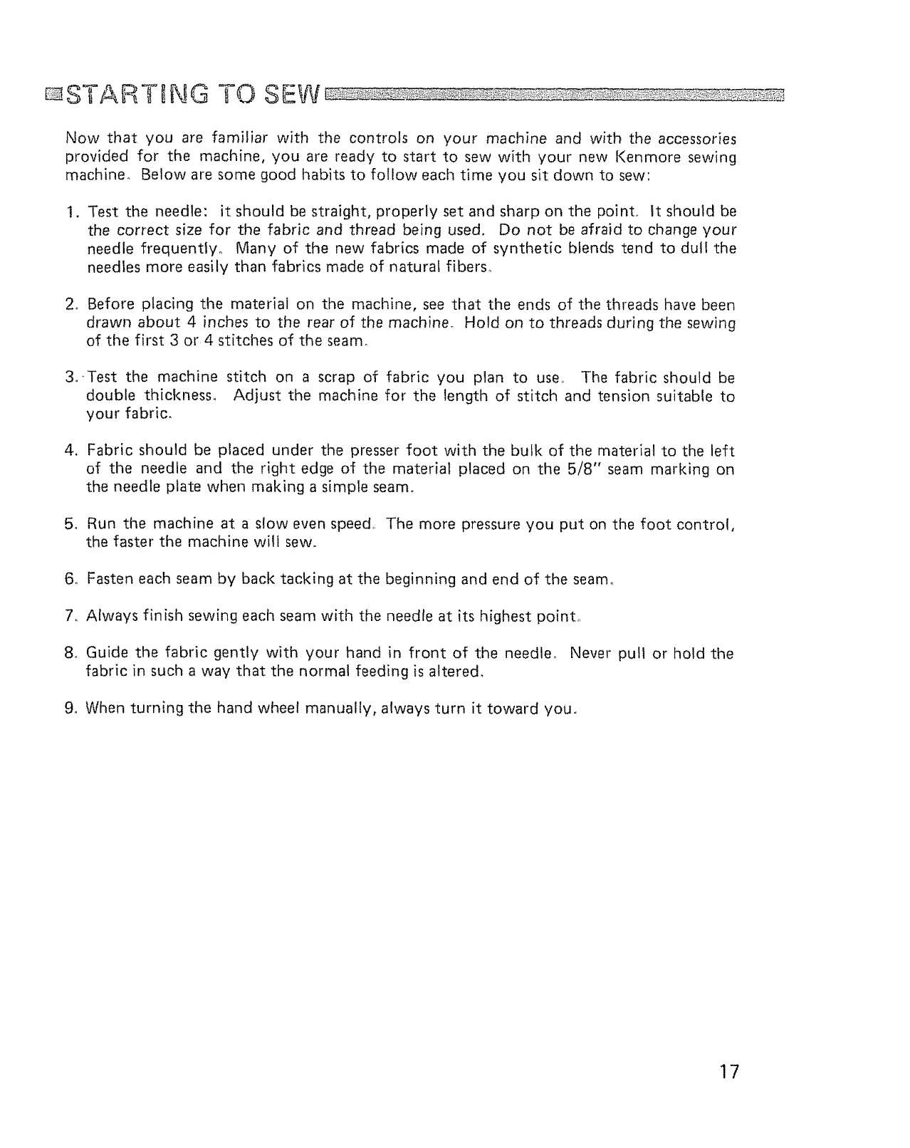 STARTING TO SEW ....................... t 7