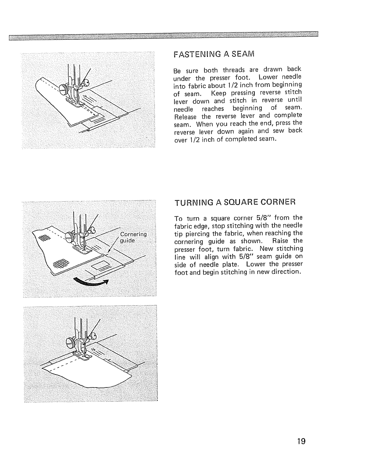 Fastening a seam, Turning a square corner