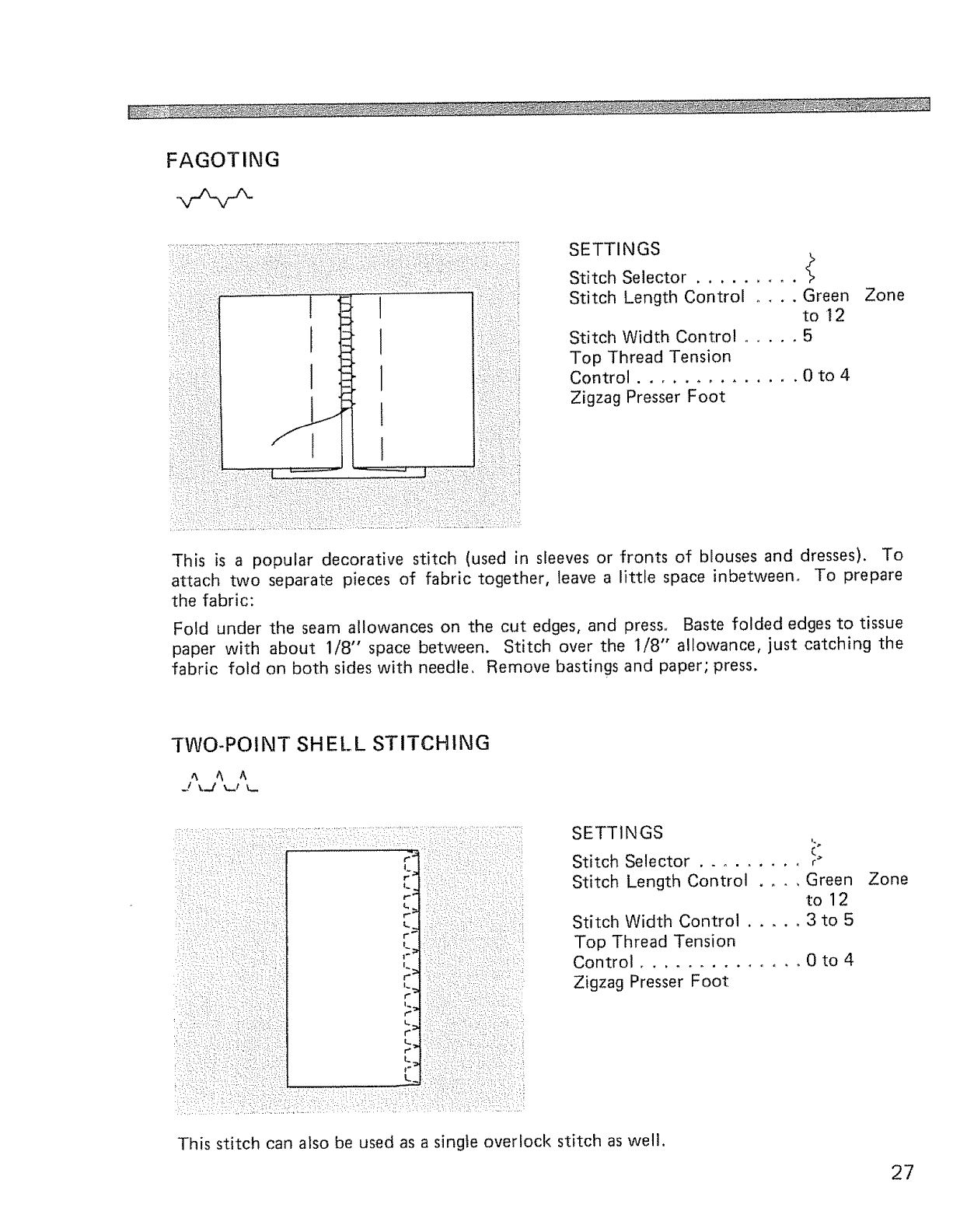 Fagoting, Two-point shell stitching ........... 27