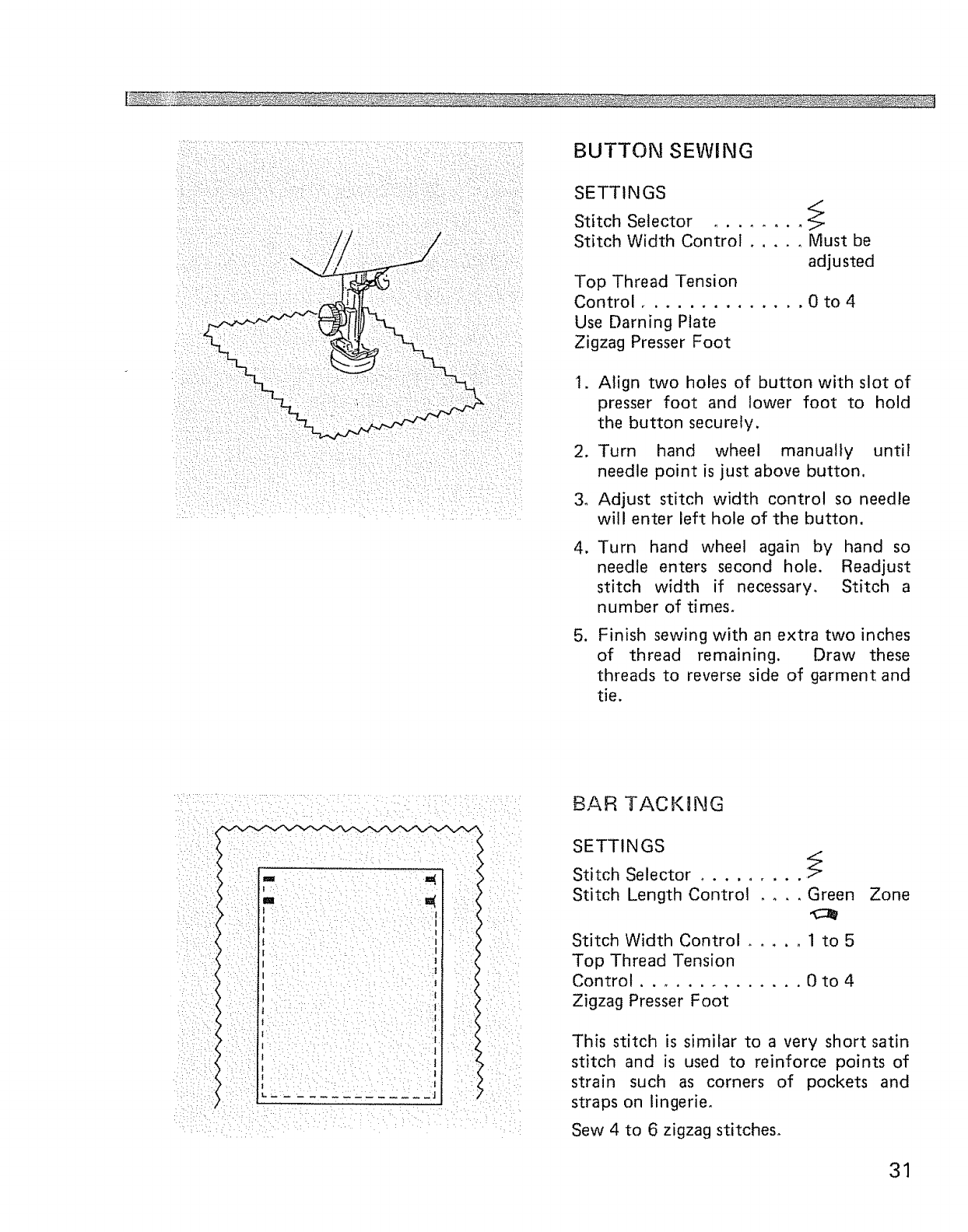 Button sewing, Bar tacking .................. 31