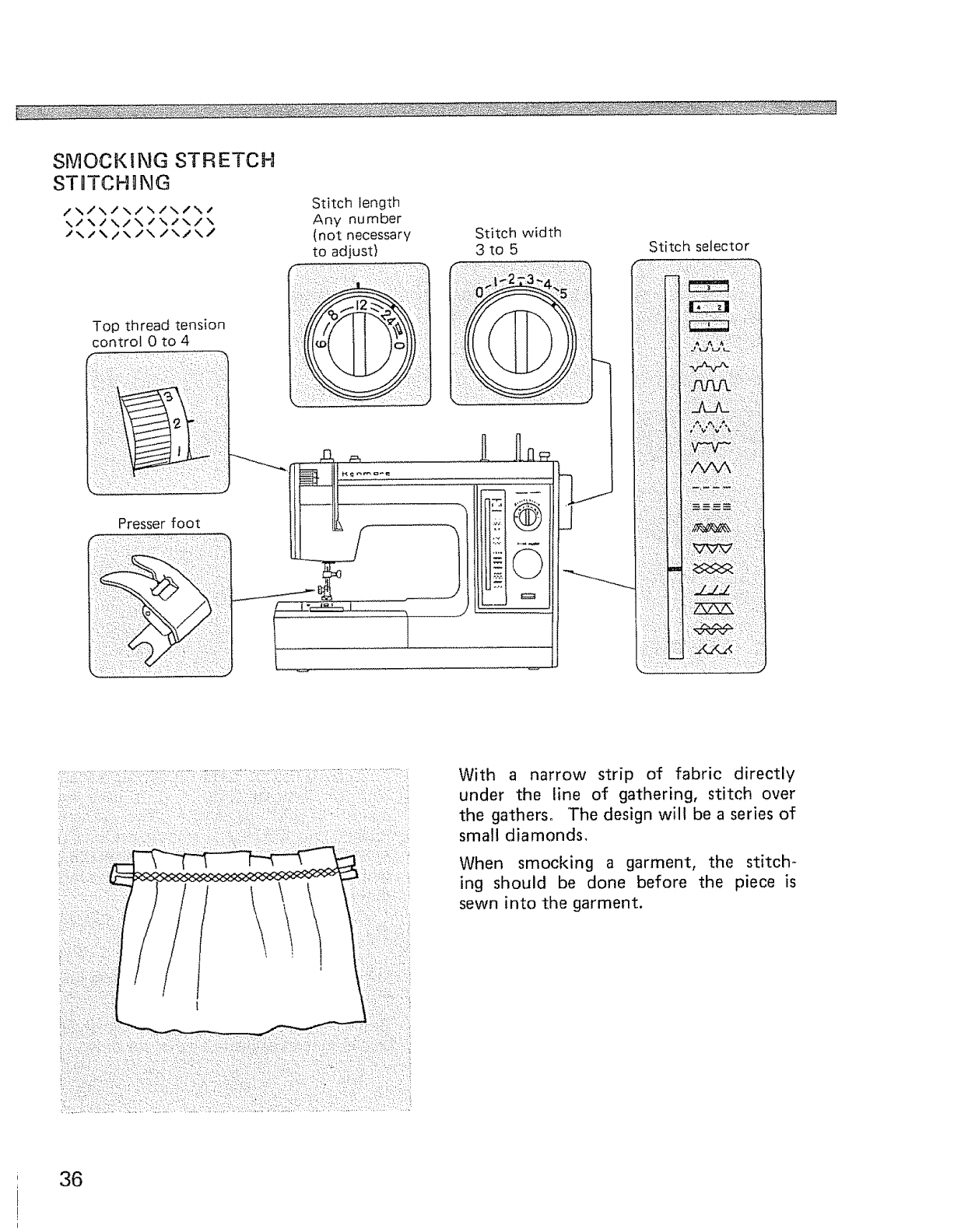 Overcast stretch, Smocking stretch, Serging or