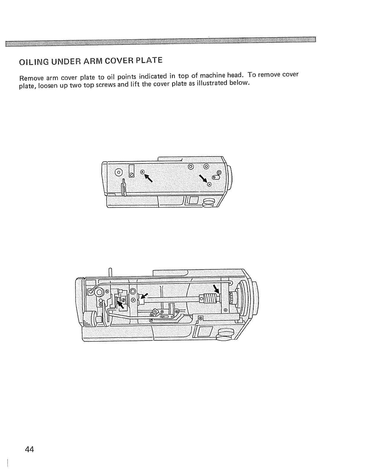 Oiling under arm cover plate ................ 44