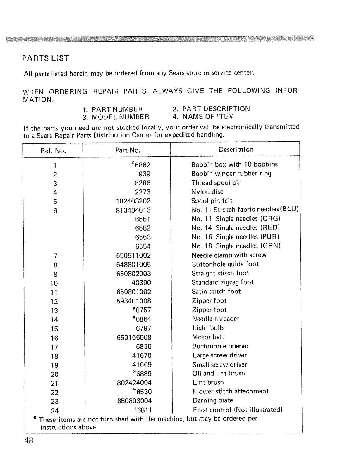 * These items are not furnished with the machine,