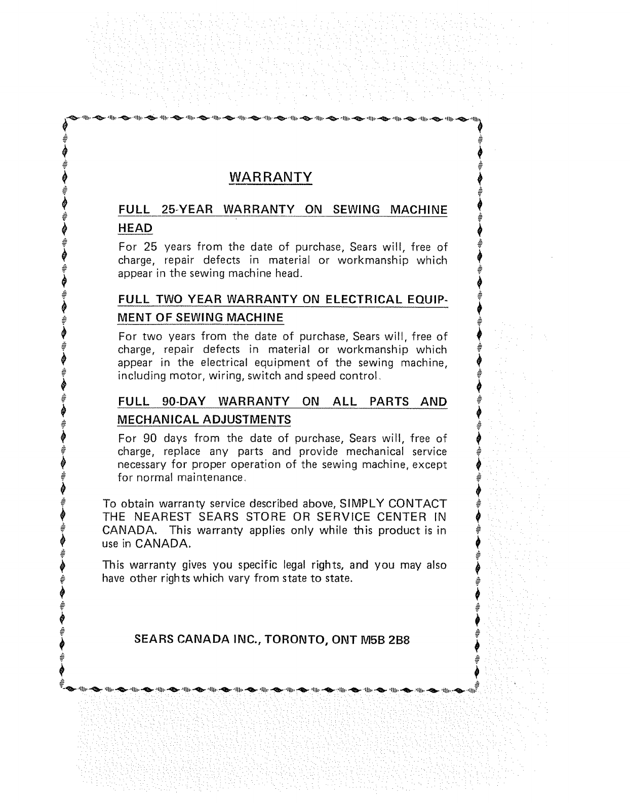 FULL 25-YEAR WARRANTY ON SEWING MACHINE