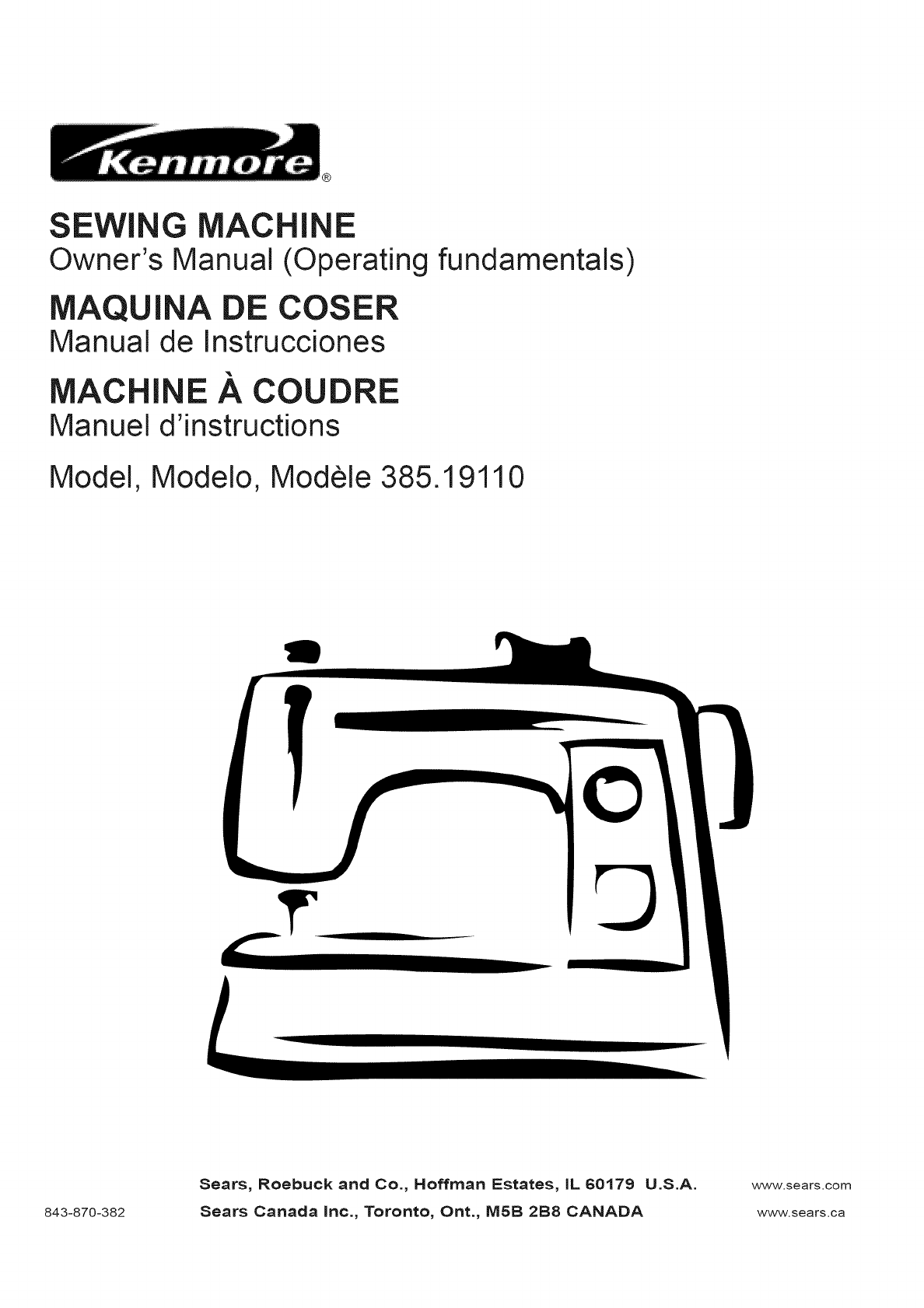 Kenmore 38519110600 User Manual SEWING MACHINE Manuals And Guides L0907250